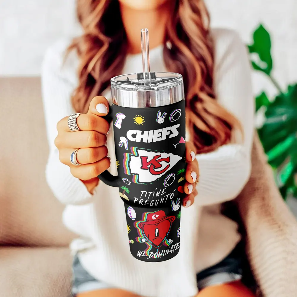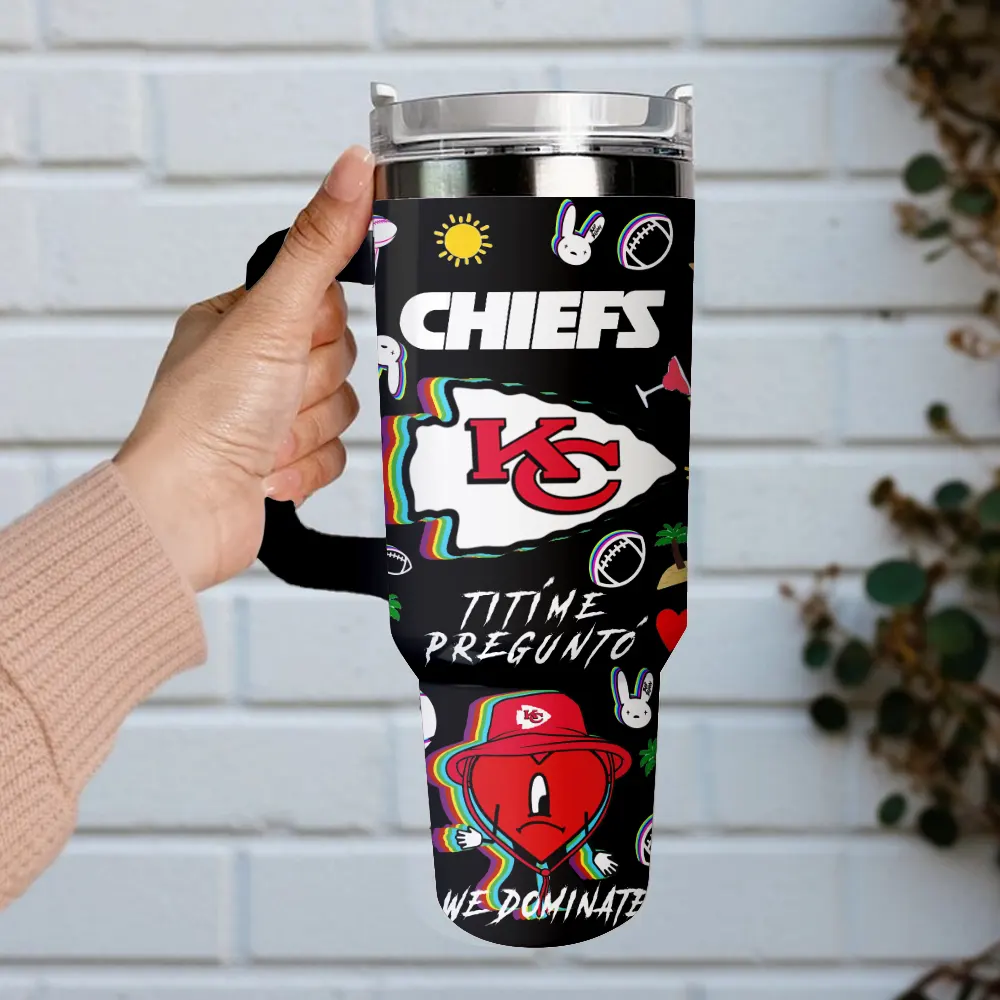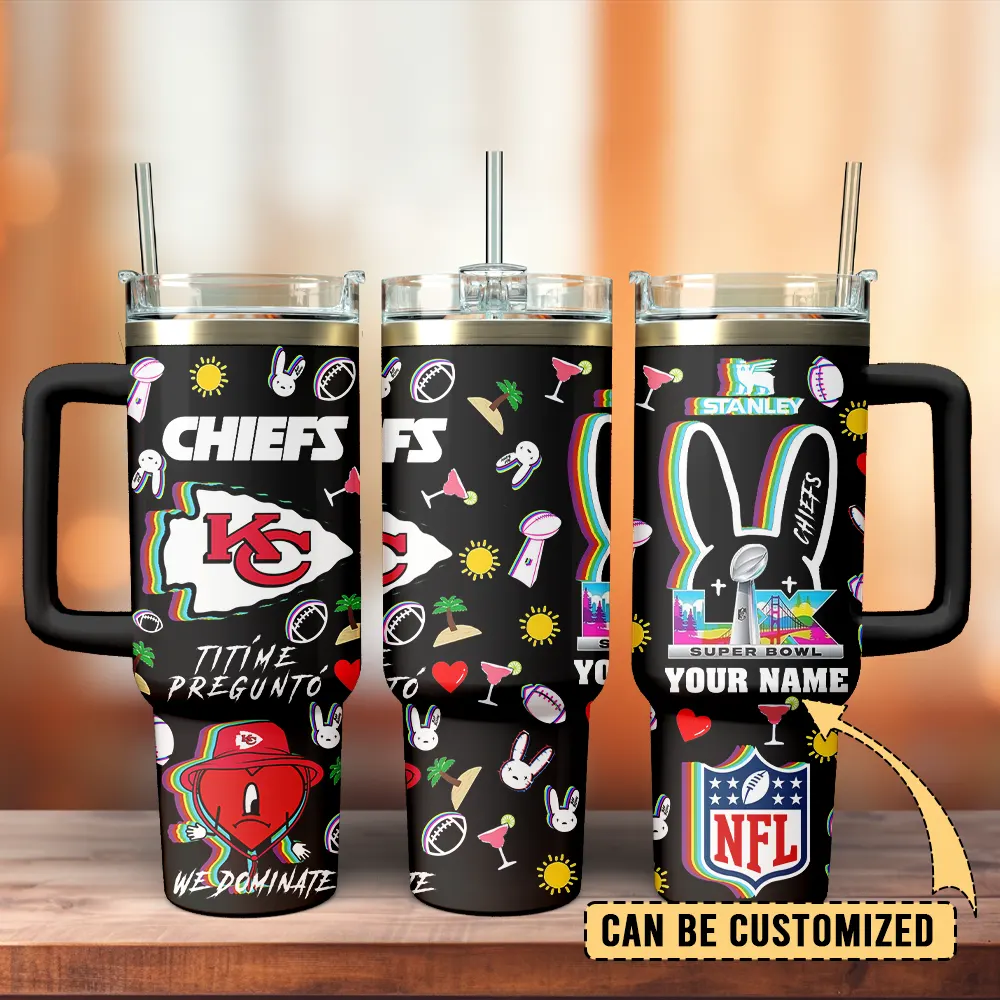 Kansas City Chiefs NFL x Bad Bunny Custom Stanley Quencher 40oz Stainless Steel Tumbler With Handle