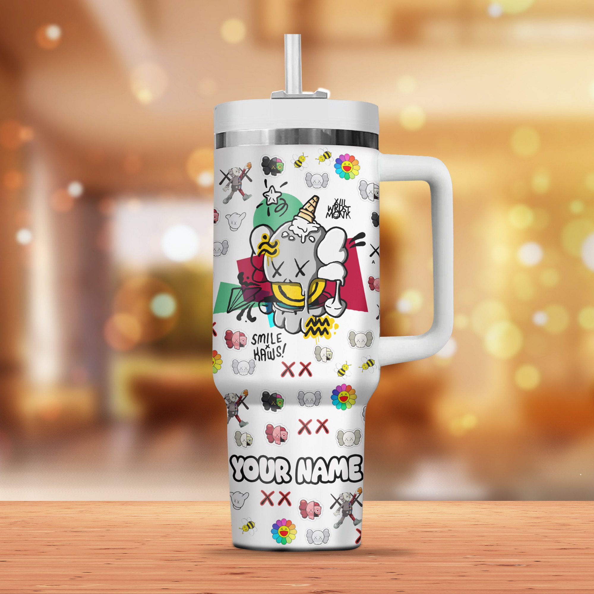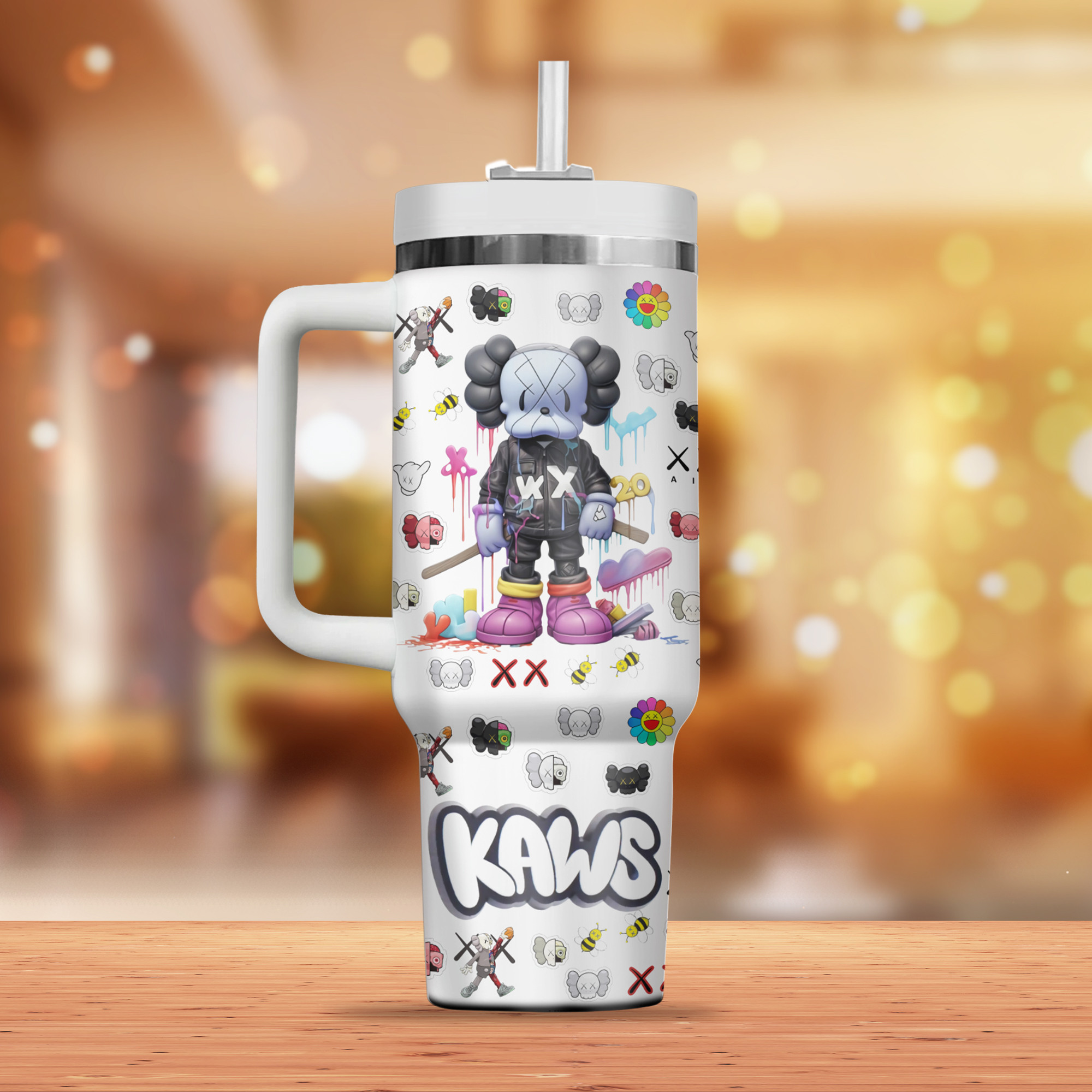 Kaws Cartoon Custom Stanley Quencher 40oz Stainless Steel Tumbler With Handle