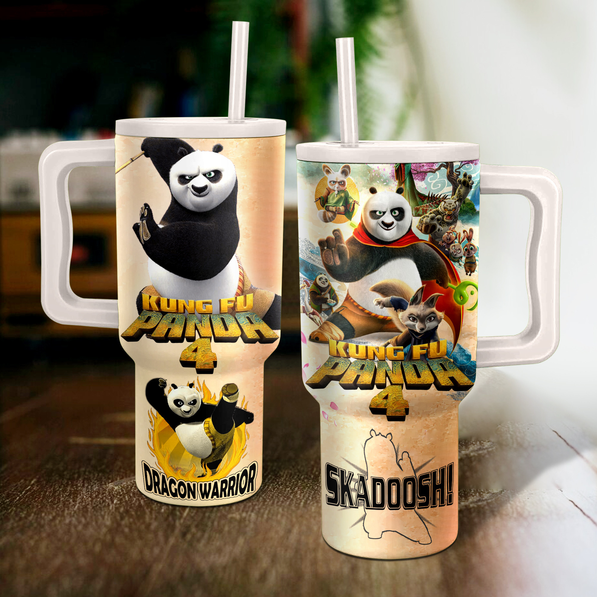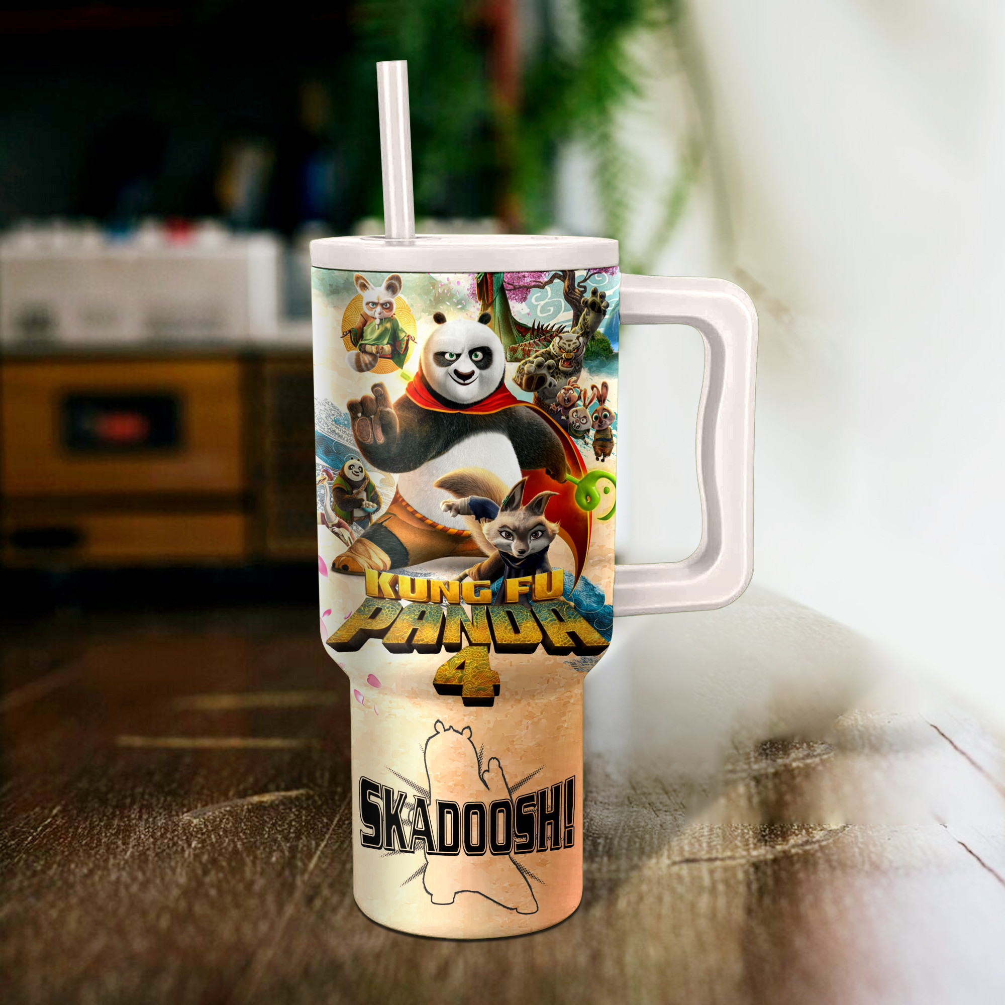 Kung Fu Panda Cartoon Custom Stanley Quencher 40oz Stainless Steel Tumbler With Handle