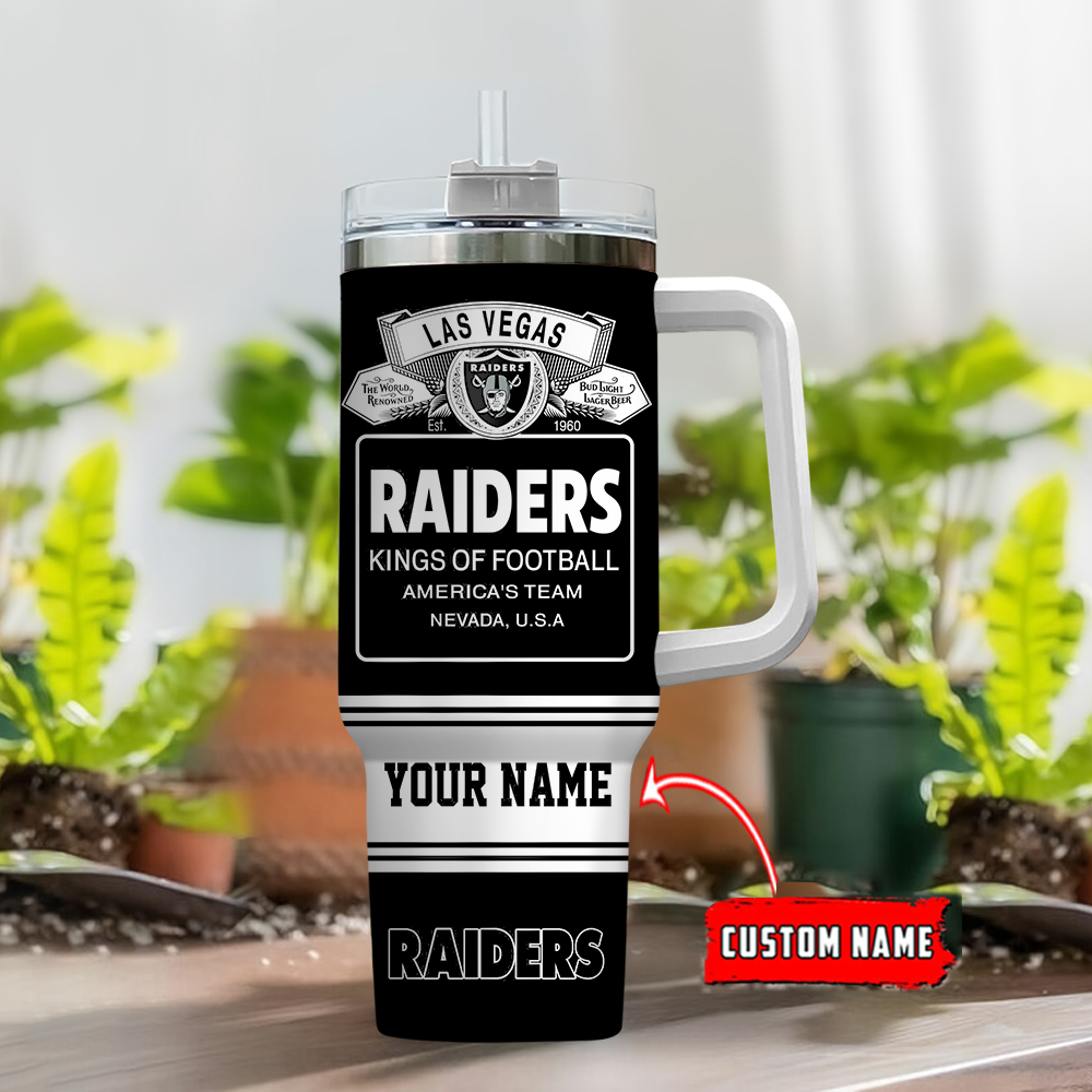 Las Vegas Raiders NFL Bud Light Custom Stanley Quencher 40oz Stainless Steel Tumbler With Handle