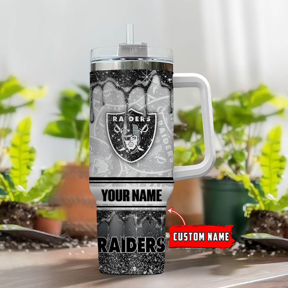 Las Vegas Raiders NFL Glitter Custom Stanley Quencher 40oz Stainless Steel Tumbler With Handle