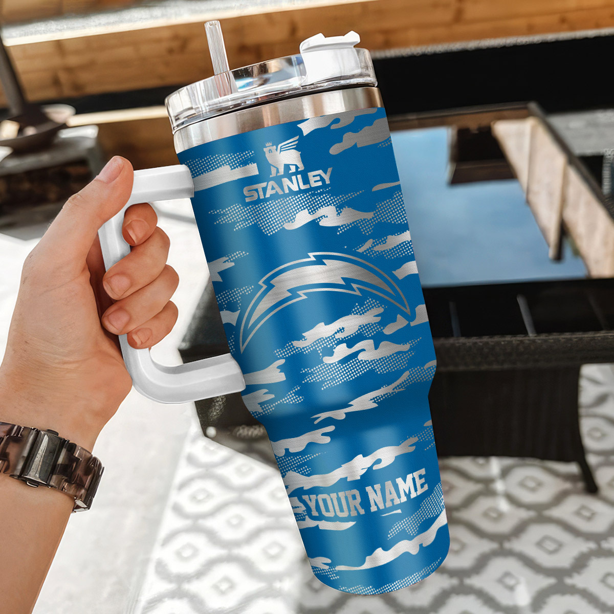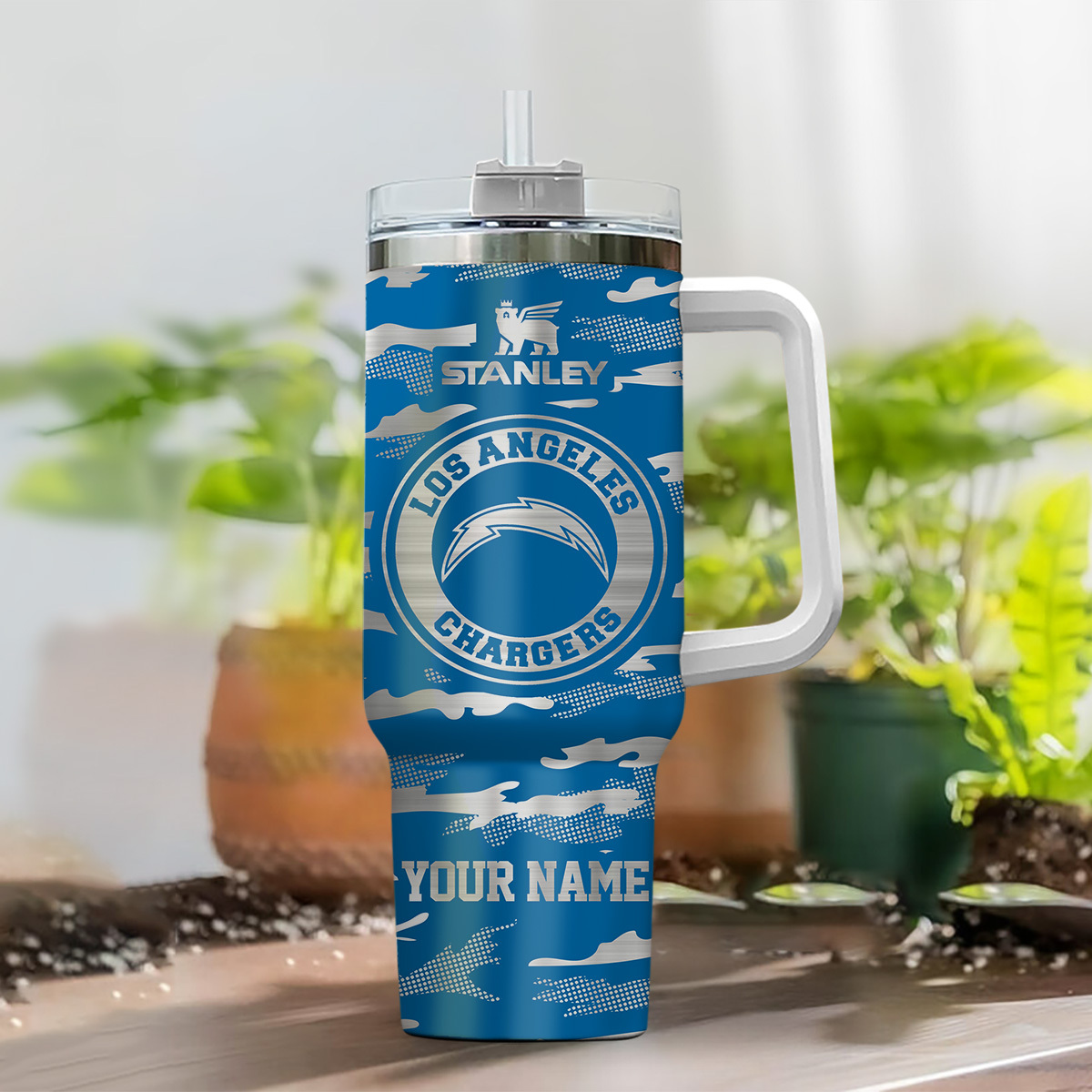 Los Angeles Chargers NFL Camo Pattern Custom Stanley Quencher 40oz Stainless Steel Tumbler With Handle