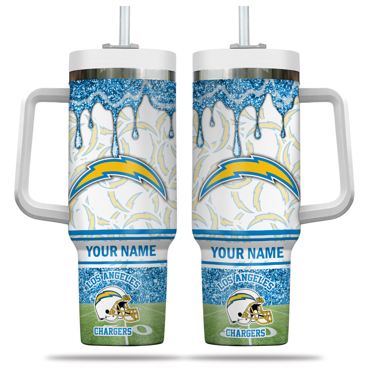 Los Angeles Chargers NFL Glitter Custom Stanley Quencher 40oz Stainless Steel Tumbler With Handle