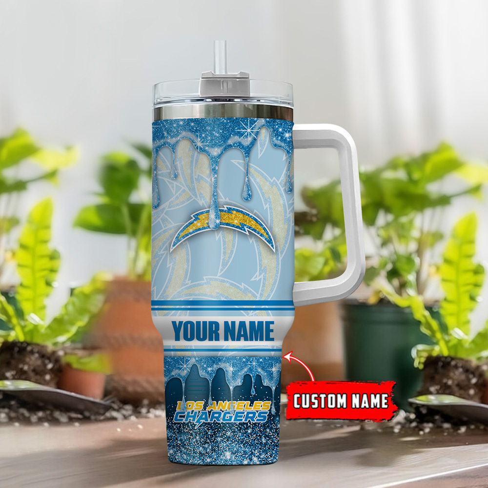 Los Angeles Chargers NFL Glitter Custom Stanley Quencher 40oz Stainless Steel Tumbler With Handle