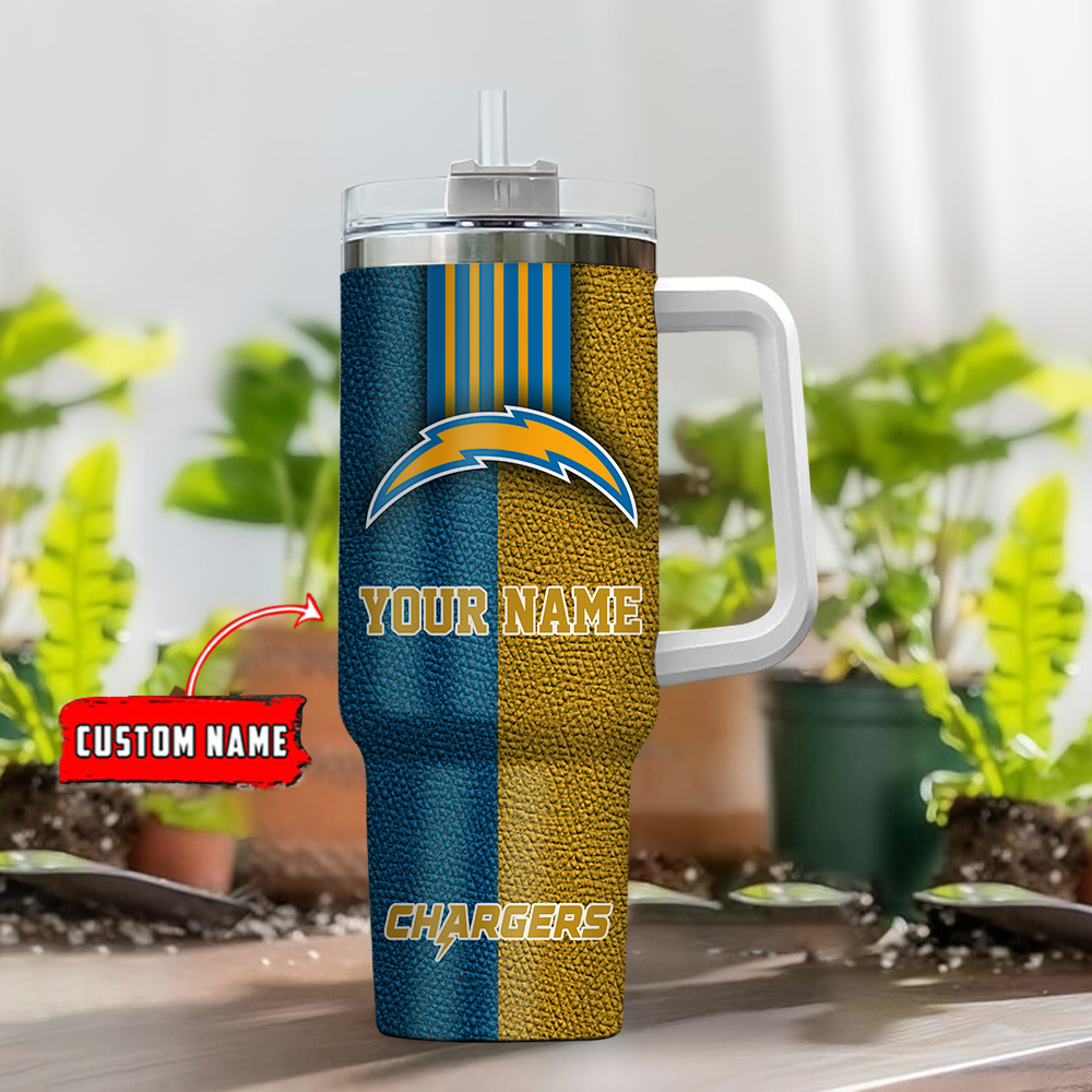 Los Angeles Chargers NFL Leather Effect Custom Stanley Quencher 40oz Stainless Steel Tumbler With Handle