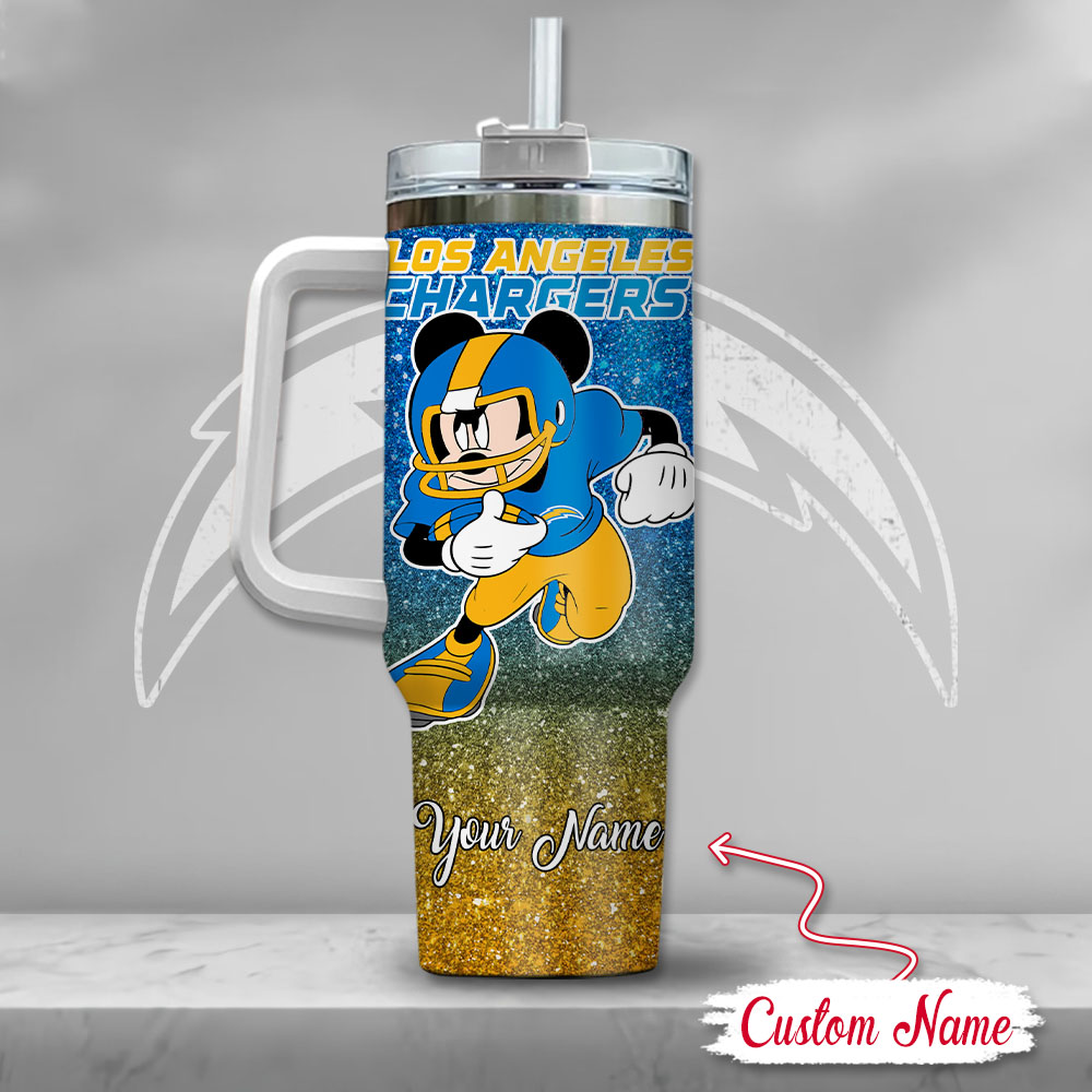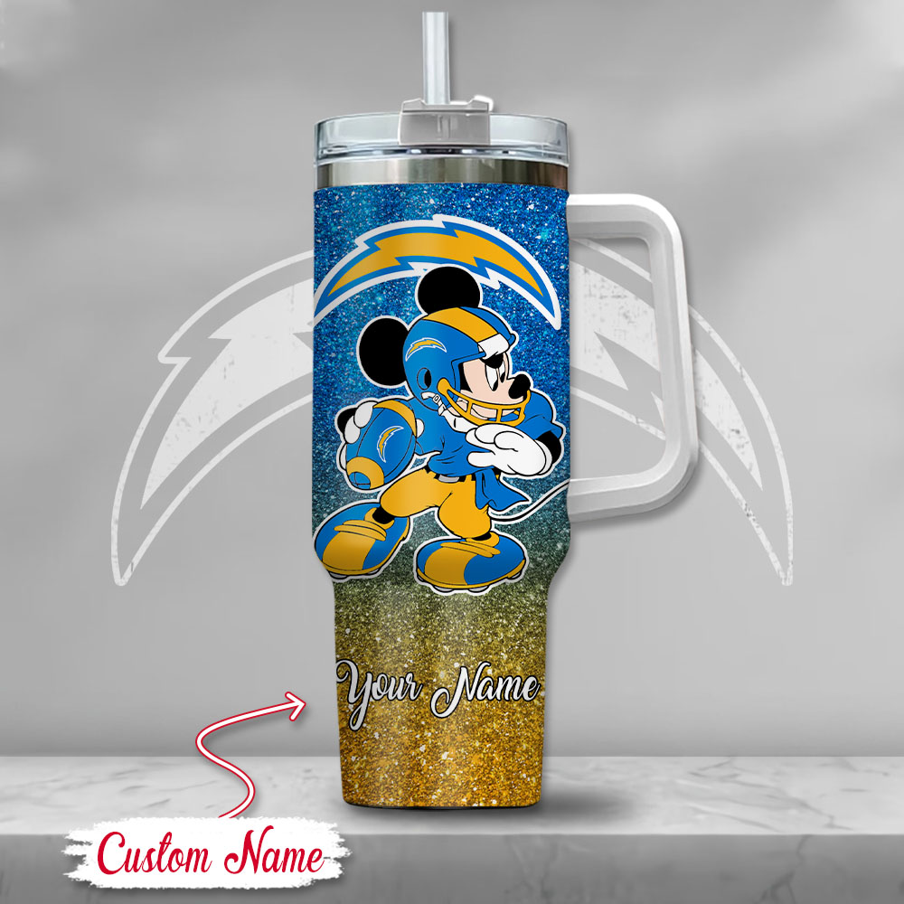 Los Angeles Chargers NFL Mickey Mouse Glitter Custom Stanley Quencher 40oz Stainless Steel Tumbler With Handle