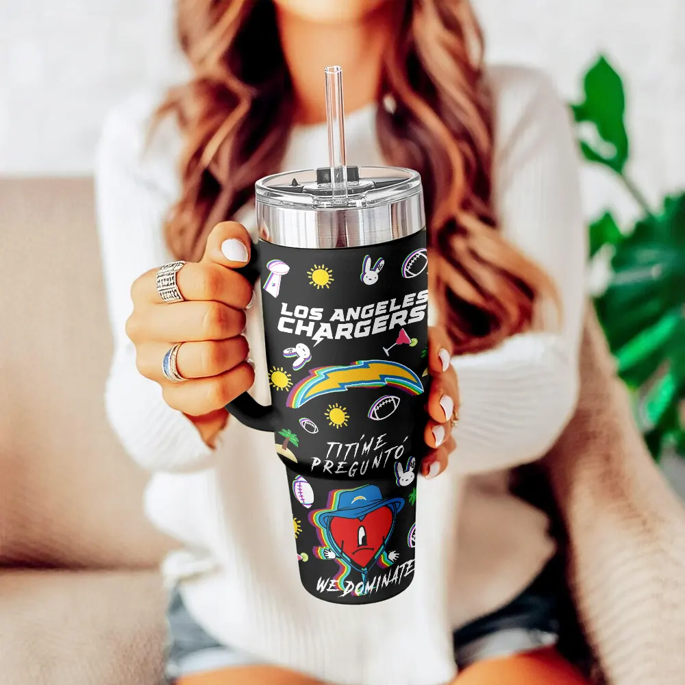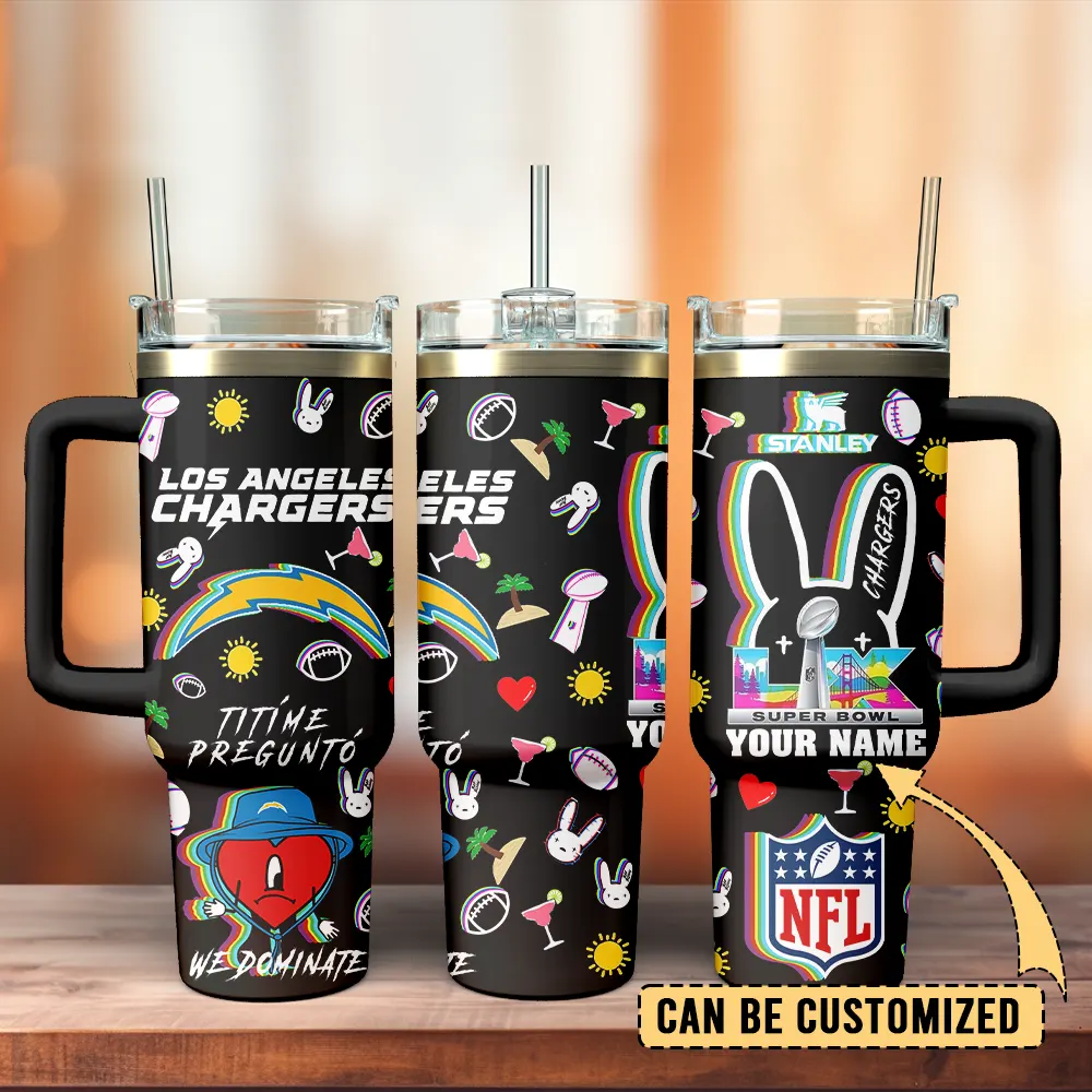 Los Angeles Chargers NFL x Bad Bunny Custom Stanley Quencher 40oz Stainless Steel Tumbler With Handle