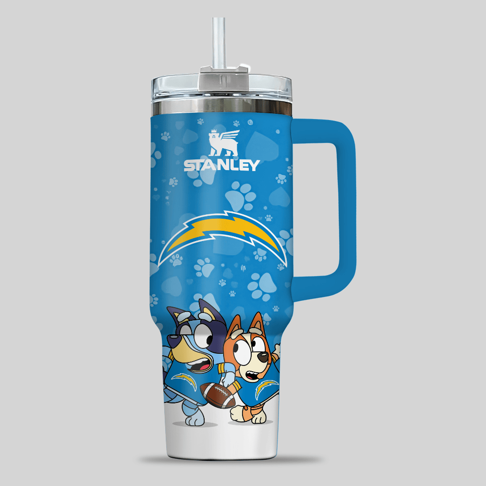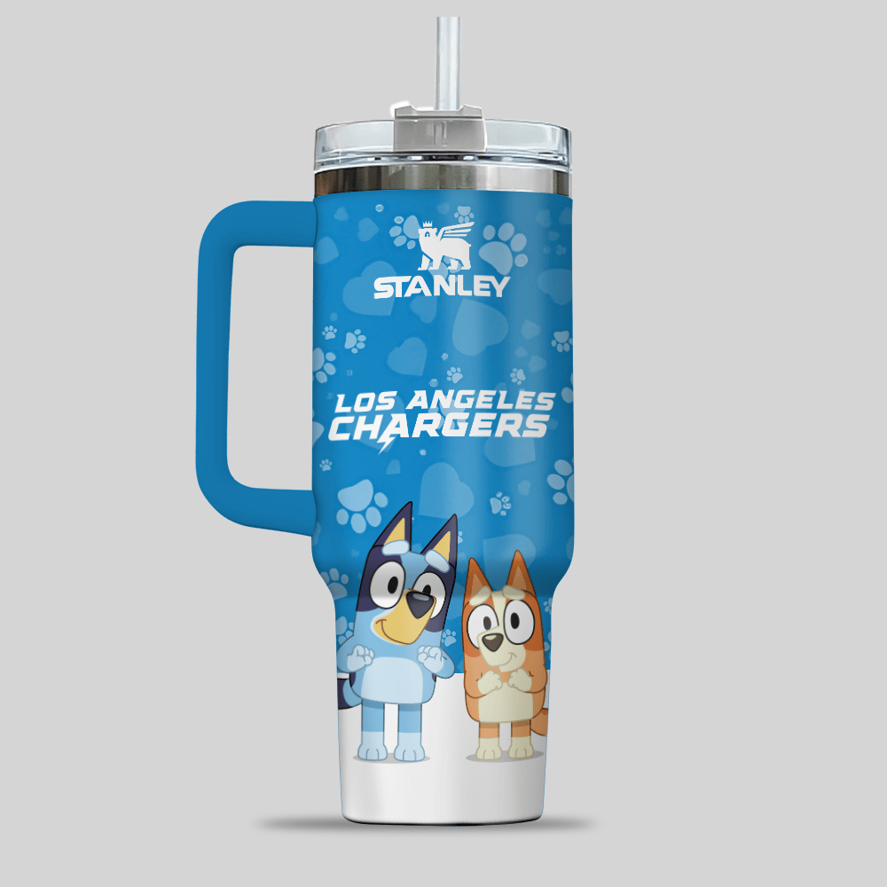 Los Angeles Chargers NFL x Bluey Custom Stanley Quencher 40oz Stainless Steel Tumbler With Handle
