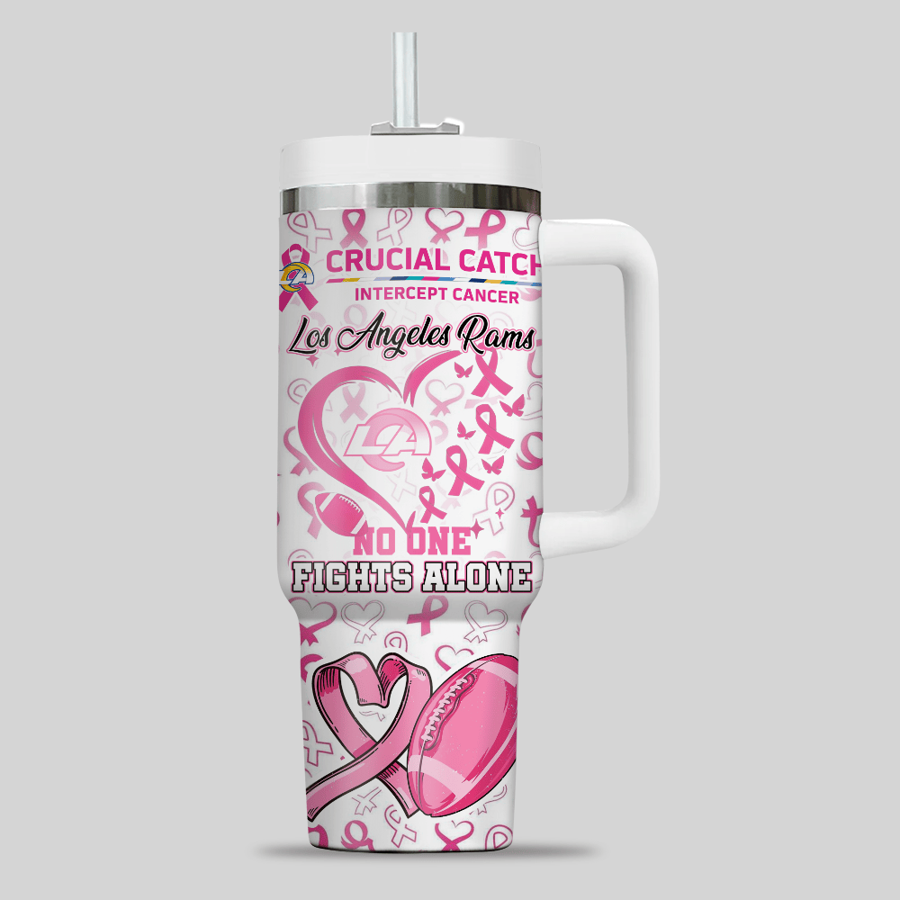 Los Angeles Rams NFL x Breast Cancer Awareness Custom Stanley Quencher 40oz Stainless Steel Tumbler With Handle