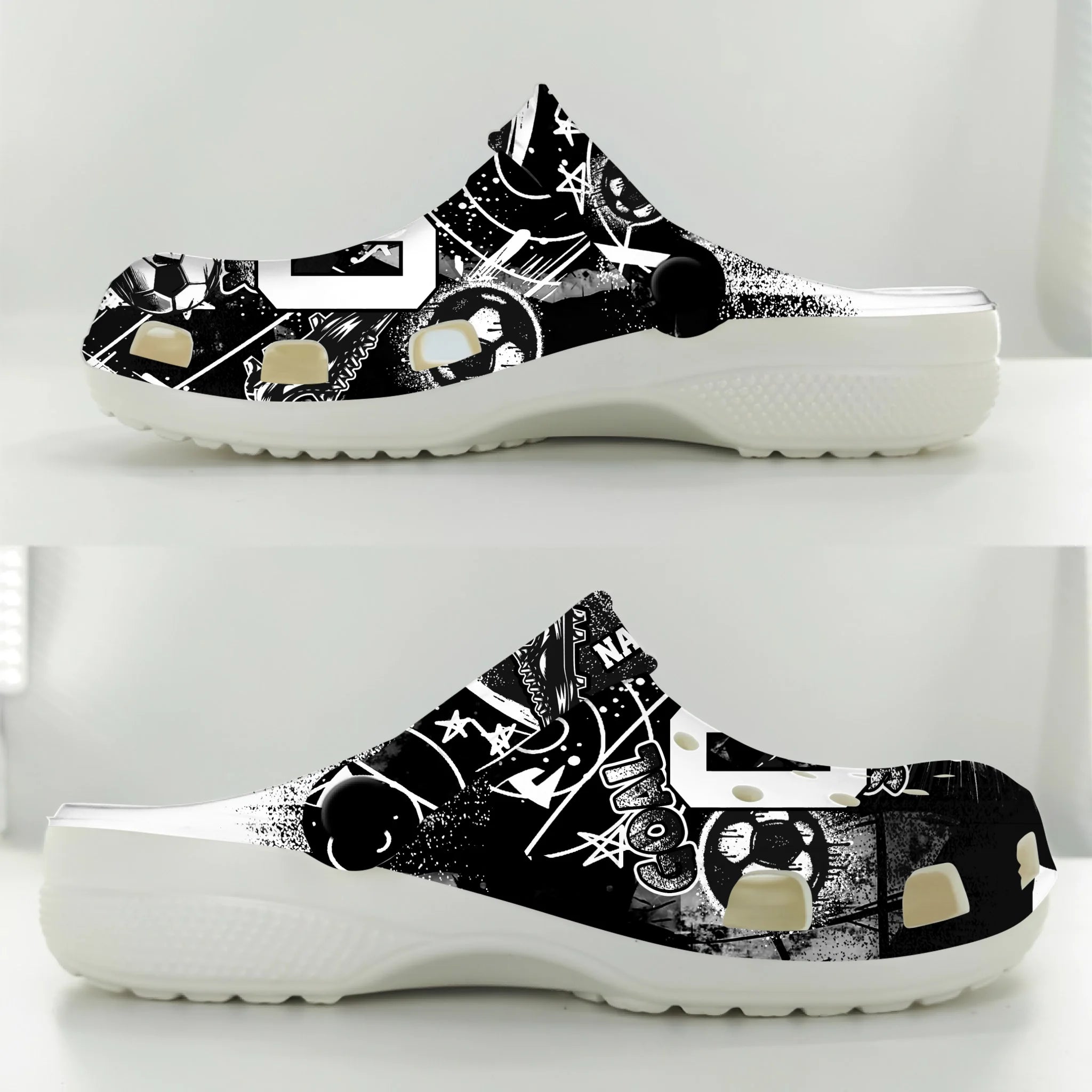 Merchidea Black Graffiti Soccer Sport Crocs Crocband Clogs Shoes Comfortable For Men Women and Kids