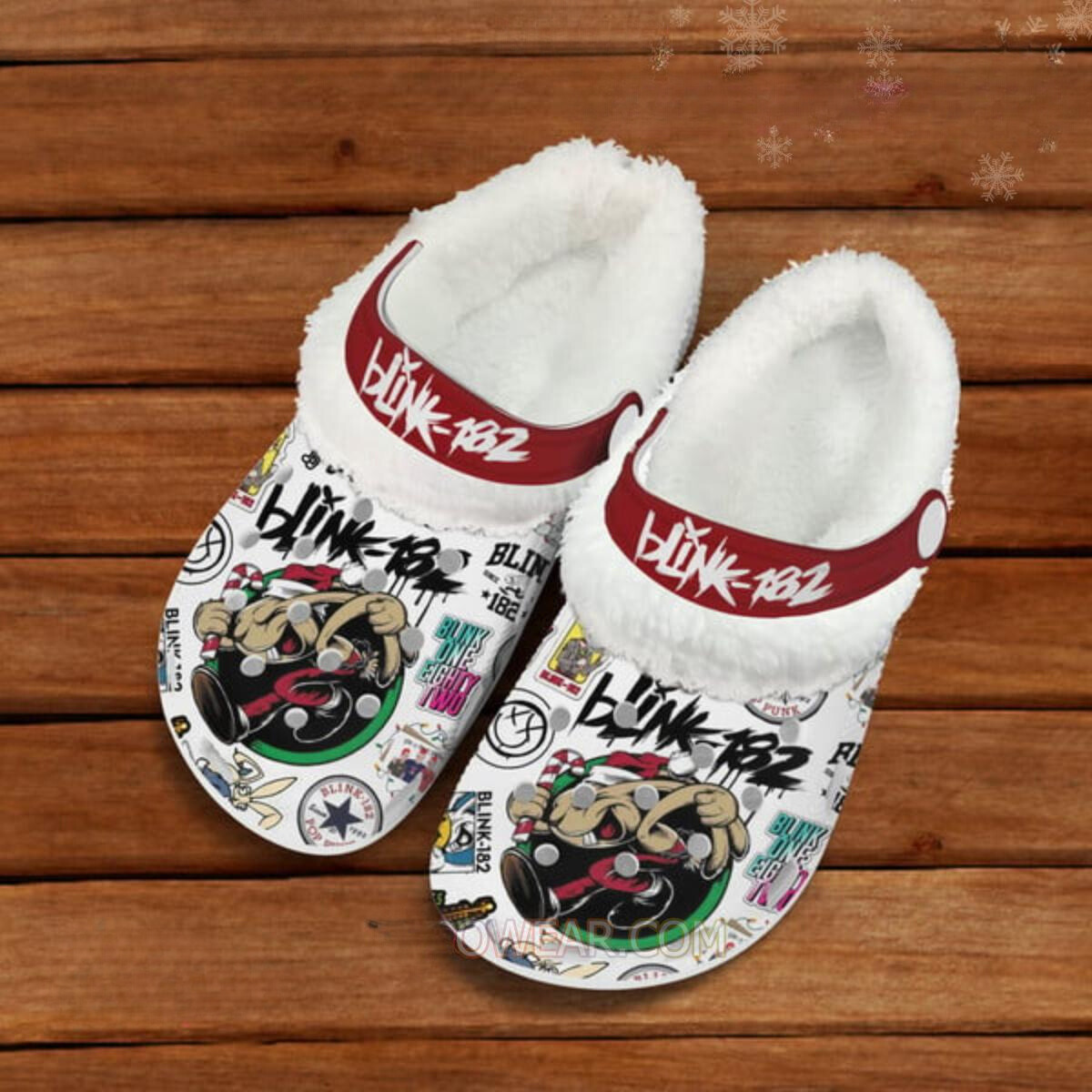 Merchidea Blink-182 Band Music Crocs Crocband Fleece Lined Clogs Shoes Comfortable For Men Women and Kids In Winter