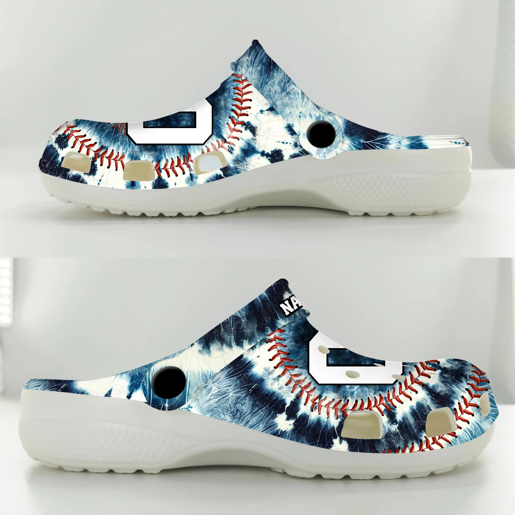 Merchidea Blue Tie-Dye Baseball Sport Crocs Crocband Clogs Shoes Comfortable For Men Women and Kids