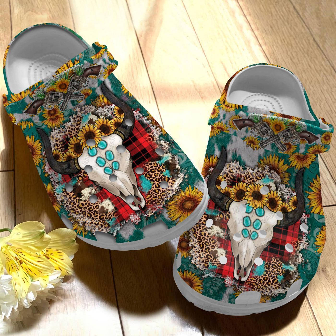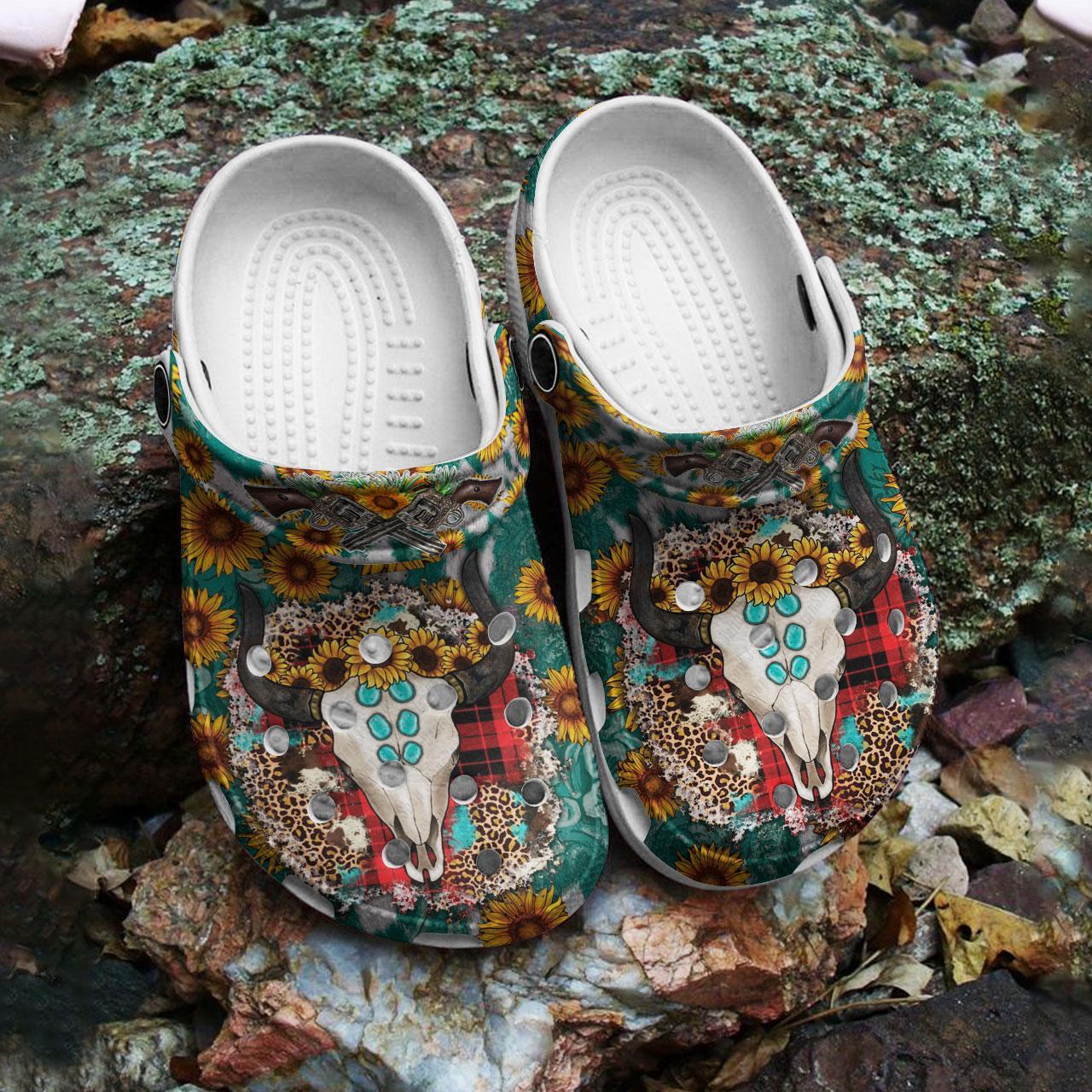 Merchidea Bull Skull and Sunflower Crocs Crocband Clogs Shoes Comfortable For Men Women and Kids