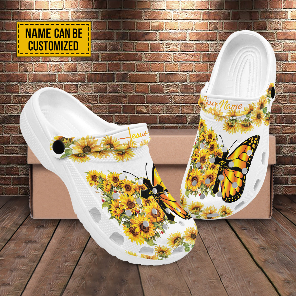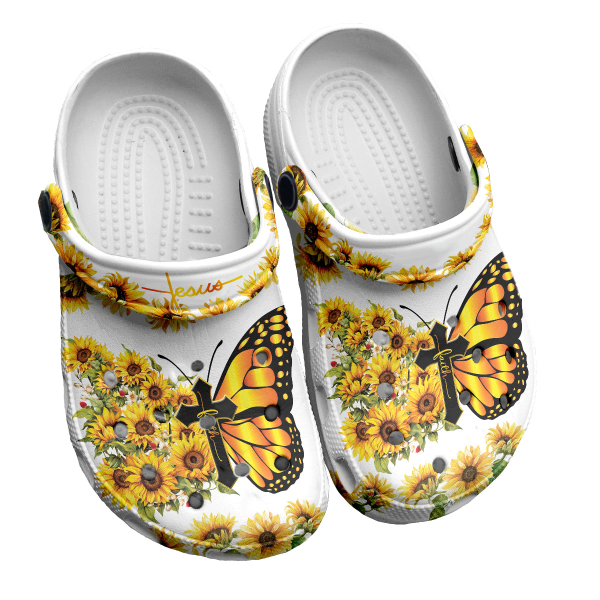 Merchidea Butterfly Flowers And Cross Customized Crocs Crocband Clogs Shoes Comfortable For Men Women and Kids Gift For Jesus Lovers