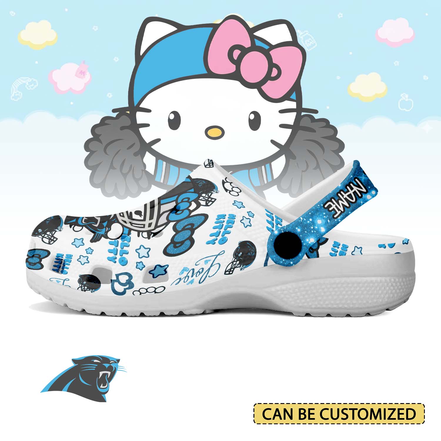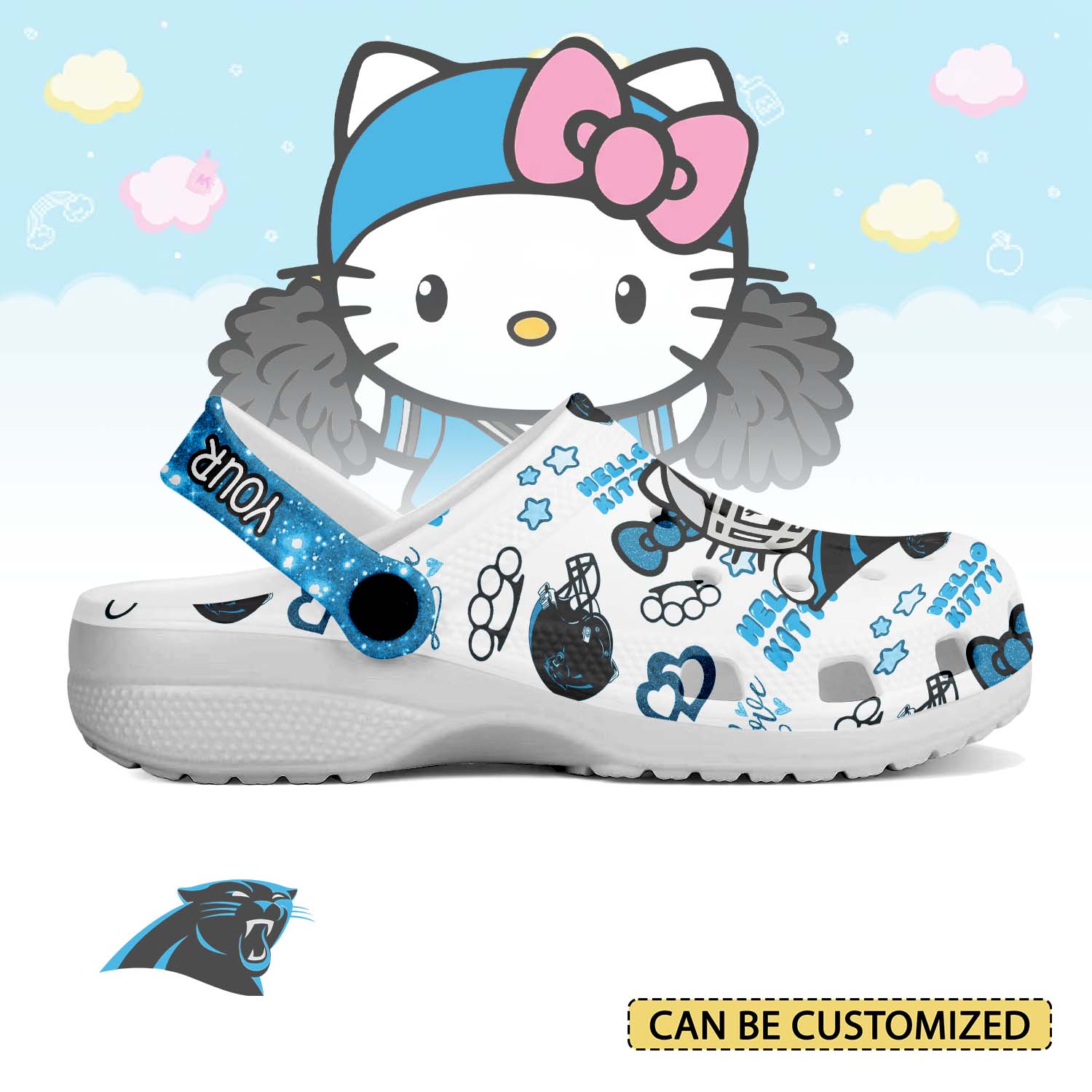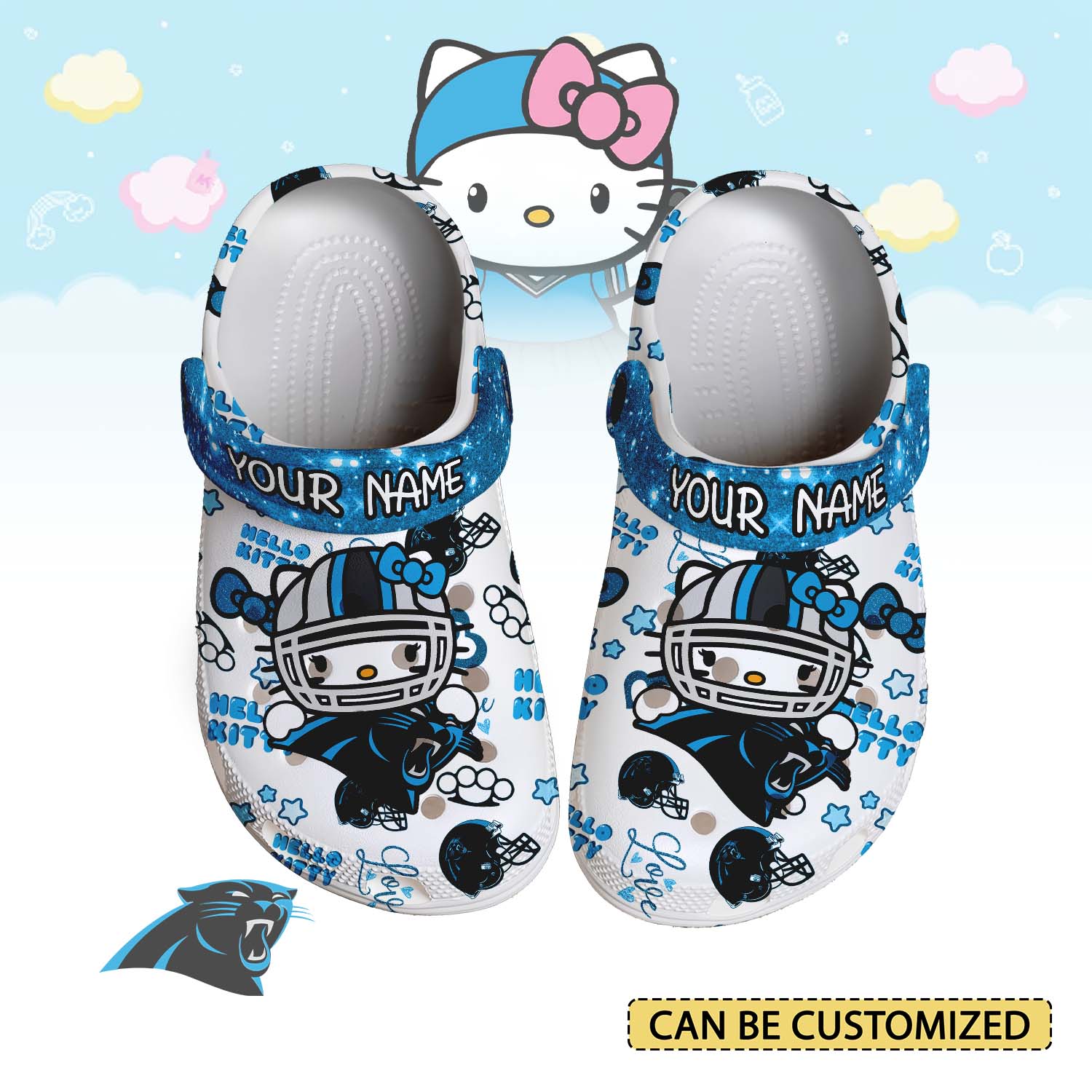 Merchidea Carolina Panthers x Hello Kitty Crocs Crocband Clogs Shoes Comfortable For Men Women and Kids