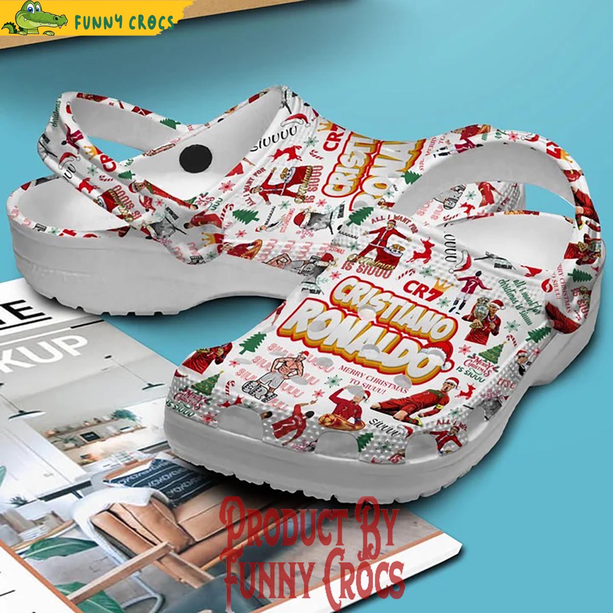 Merchidea Cristiano Ronaldo CR7 Christmas Crocs Crocband Clogs Shoes Comfortable For Men Women and Kids