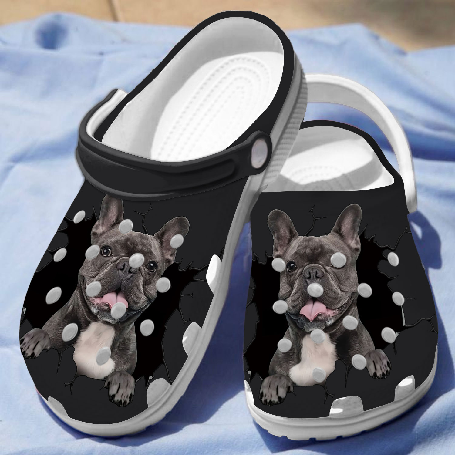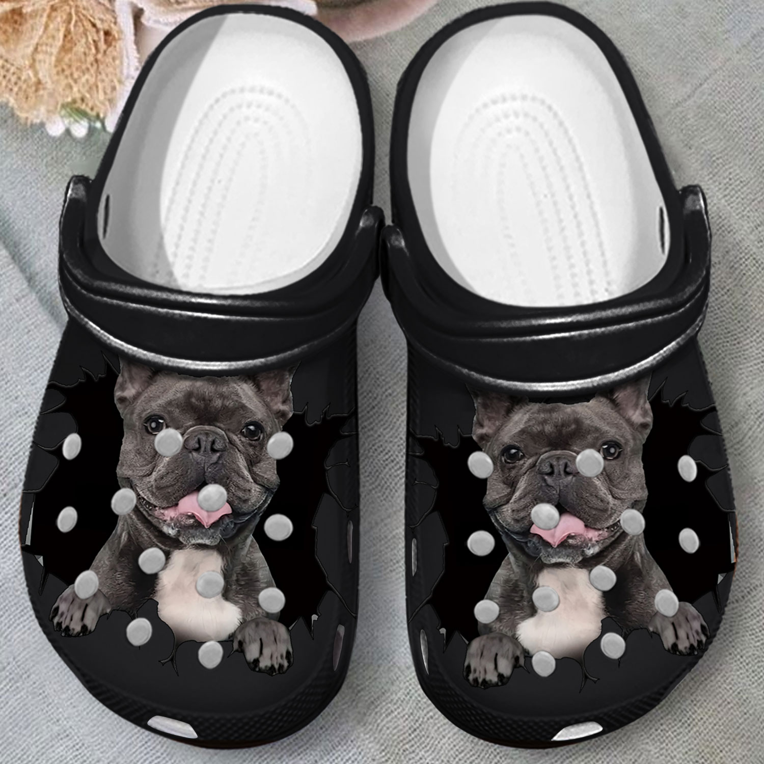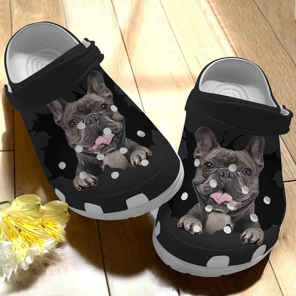 Merchidea Cute Black French Bull Dog Crocs Crocband Clogs Shoes Comfortable For Men Women and Kids