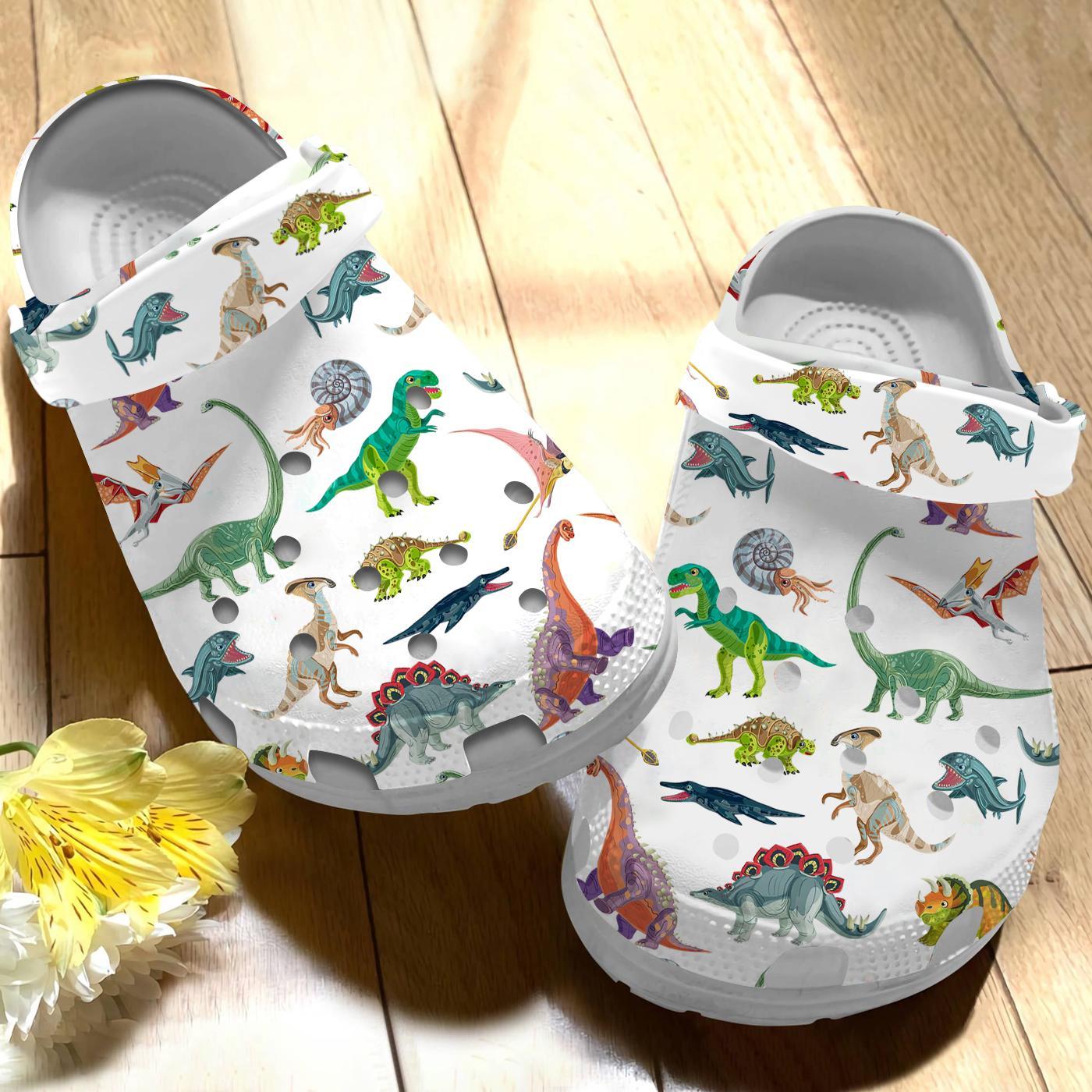 Merchidea Cute Dinosaurs Collection Crocs Crocband Clogs Shoes Comfortable For Men Women and Kids