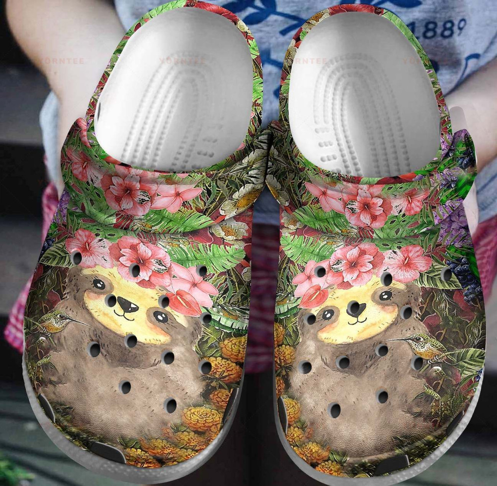 Merchidea Cute Flowers And Sloth Gift For Lover Rubber clog Shoes Comfy Footwear