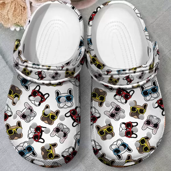 Merchidea Cute French Bulldog Wearing Colorful Glasses Crocs Crocband Clogs Shoes Comfortable For Men Women and Kids