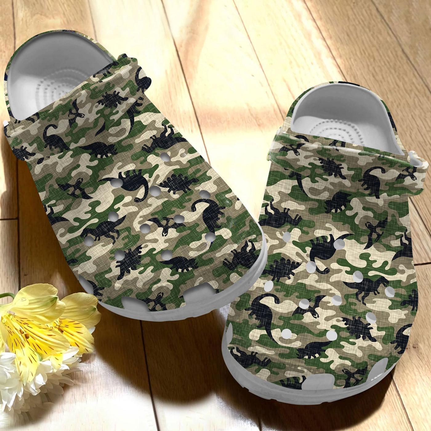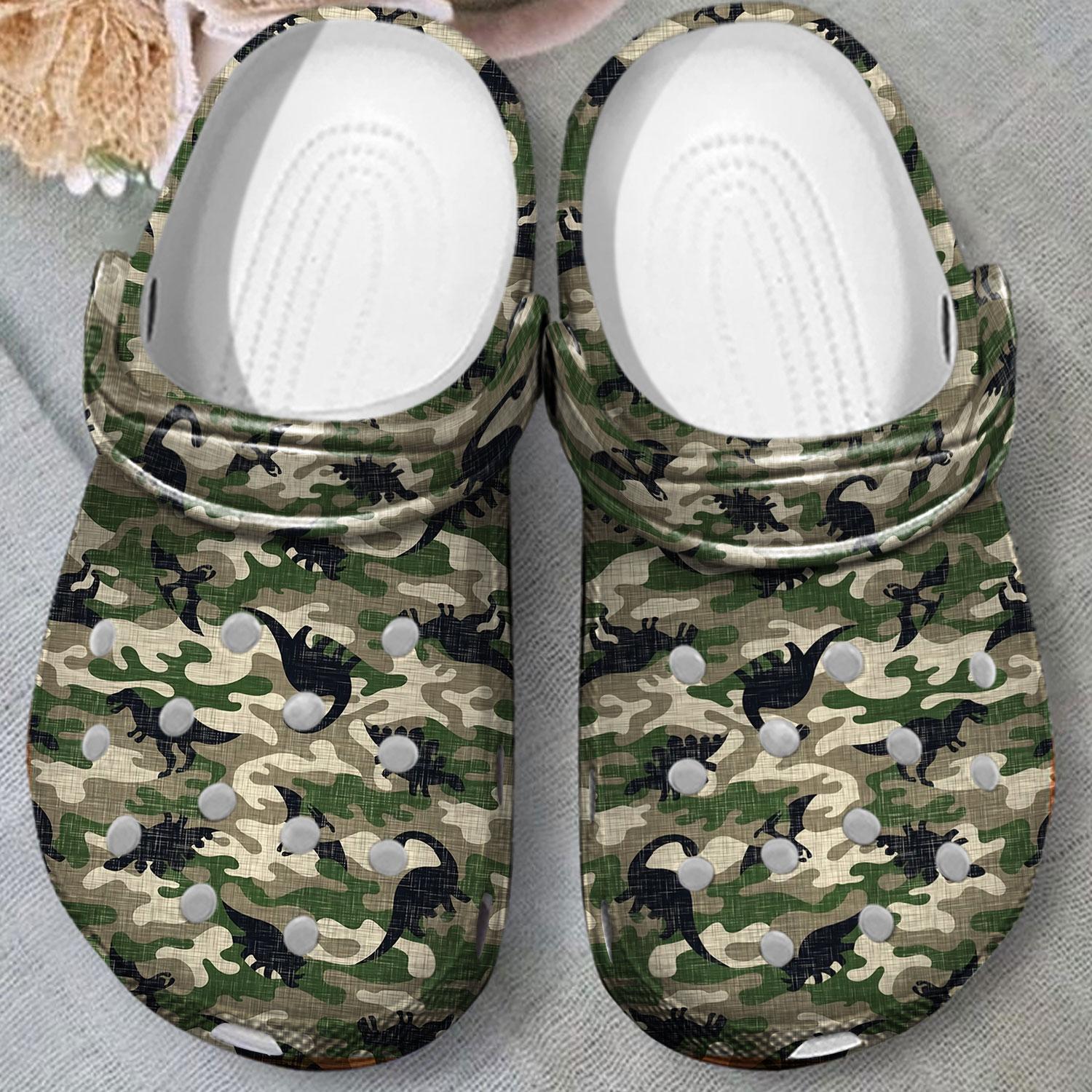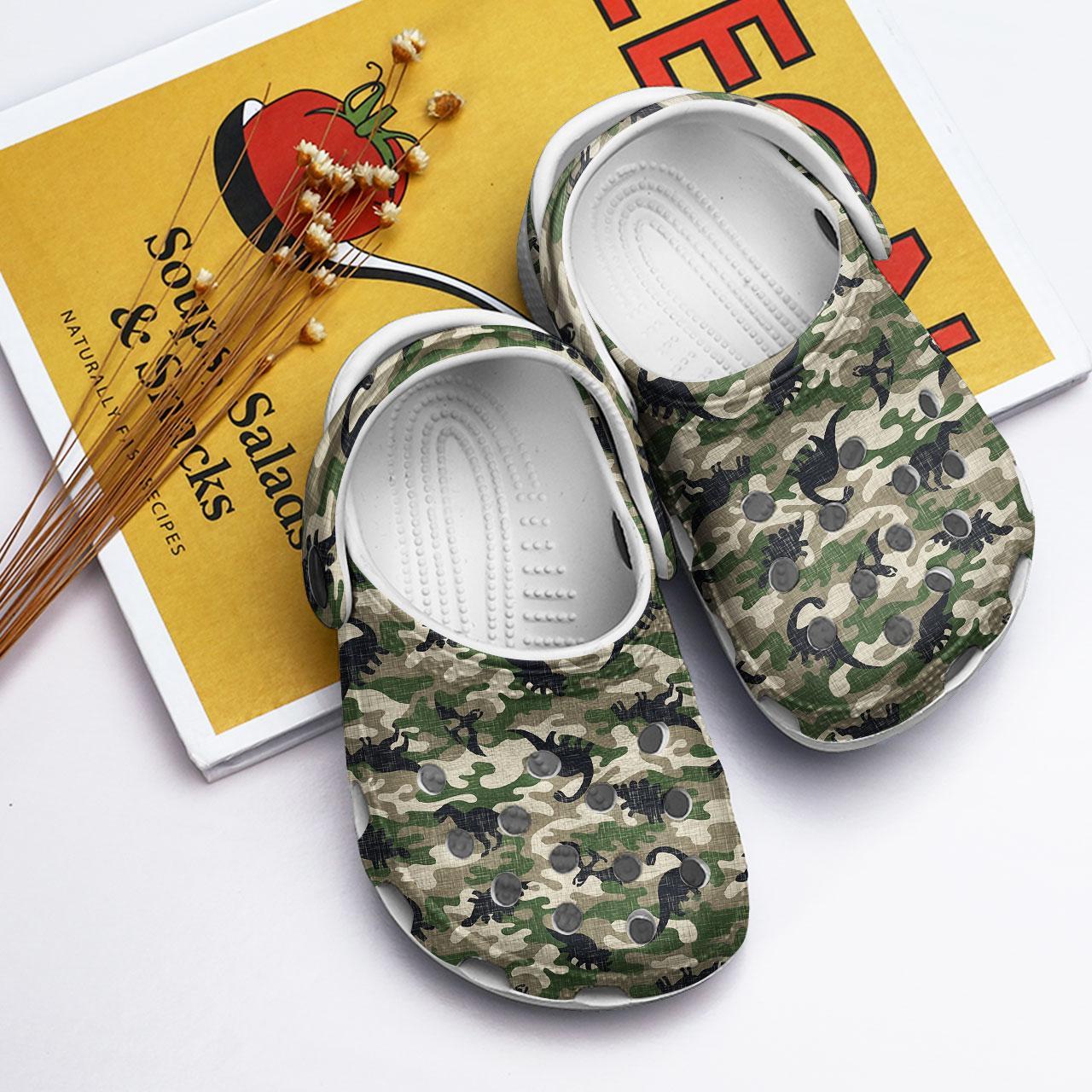 Merchidea Dinosaur Army Crocs Crocband Clogs Shoes Comfortable For Men Women and Kids