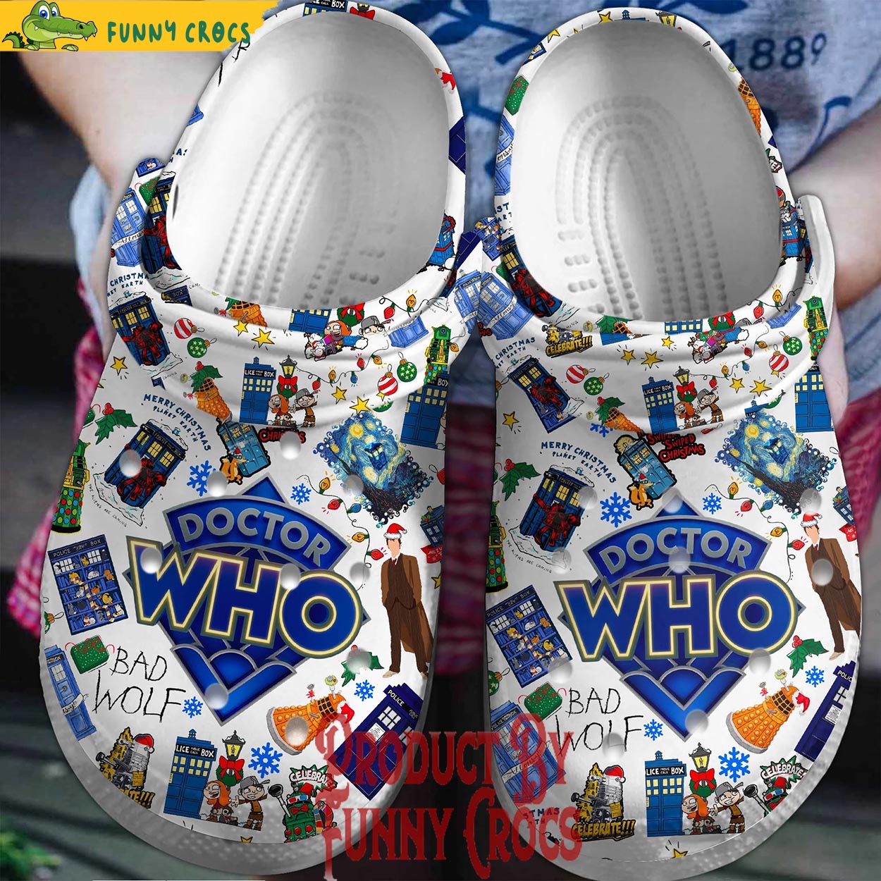 Merchidea Doctor Who TV Series Christmas Crocs Crocband Clogs Shoes Comfortable For Men Women and Kids