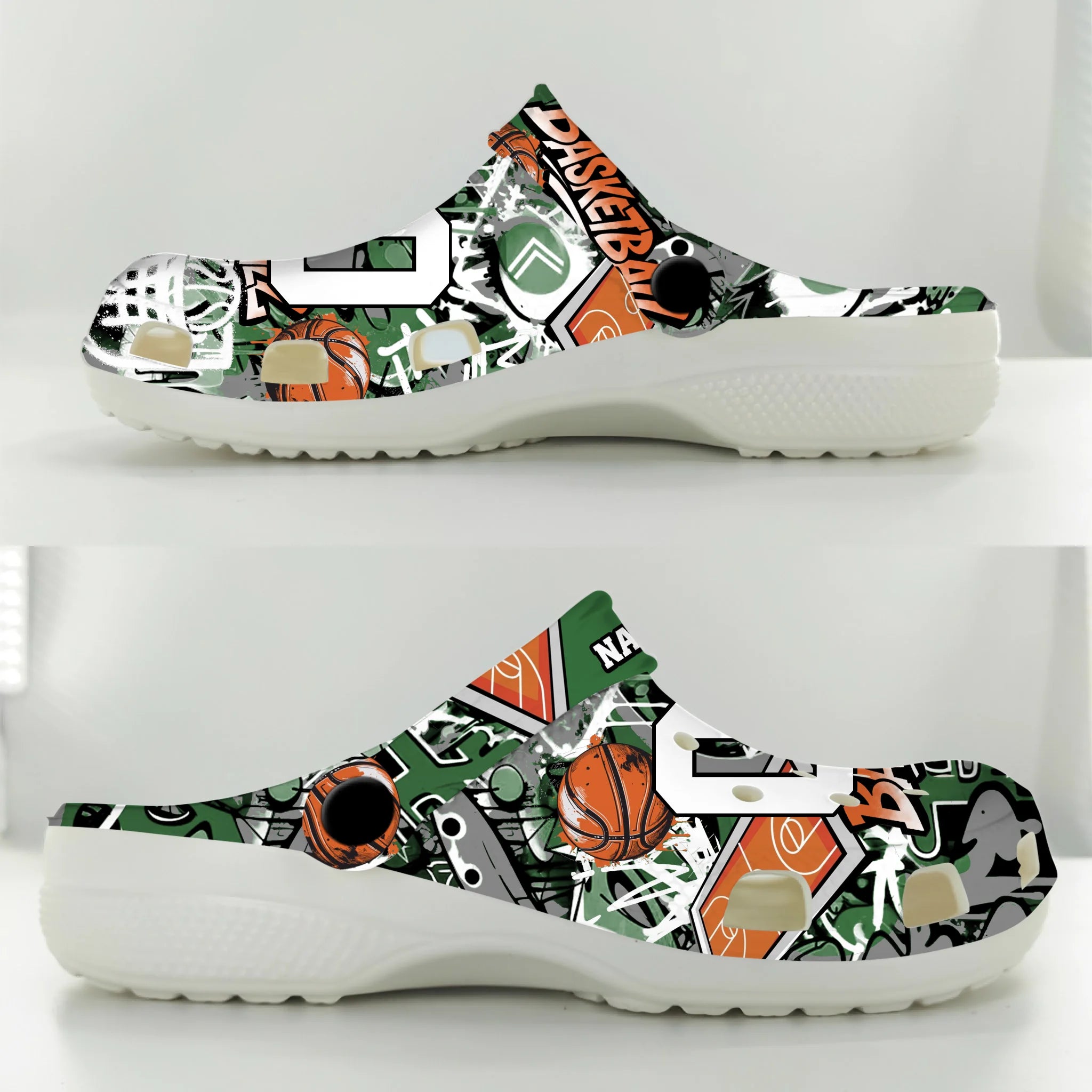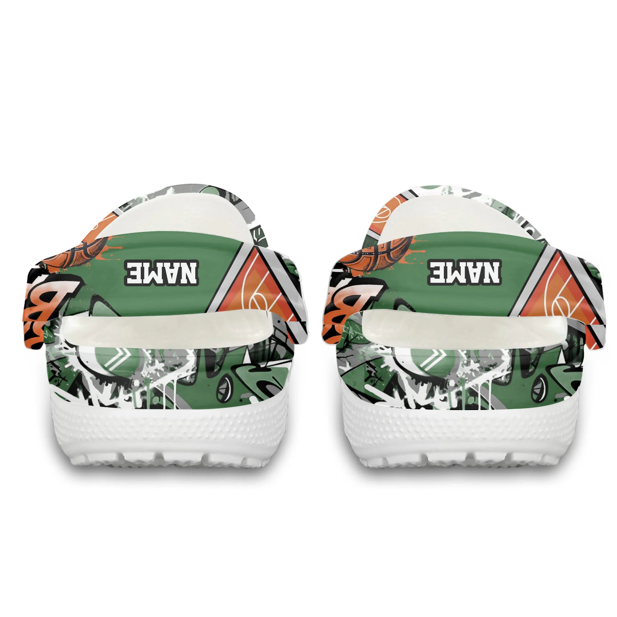 Merchidea Green Graffiti Basketball Sport Crocs Crocband Clogs Shoes Comfortable For Men Women and Kids