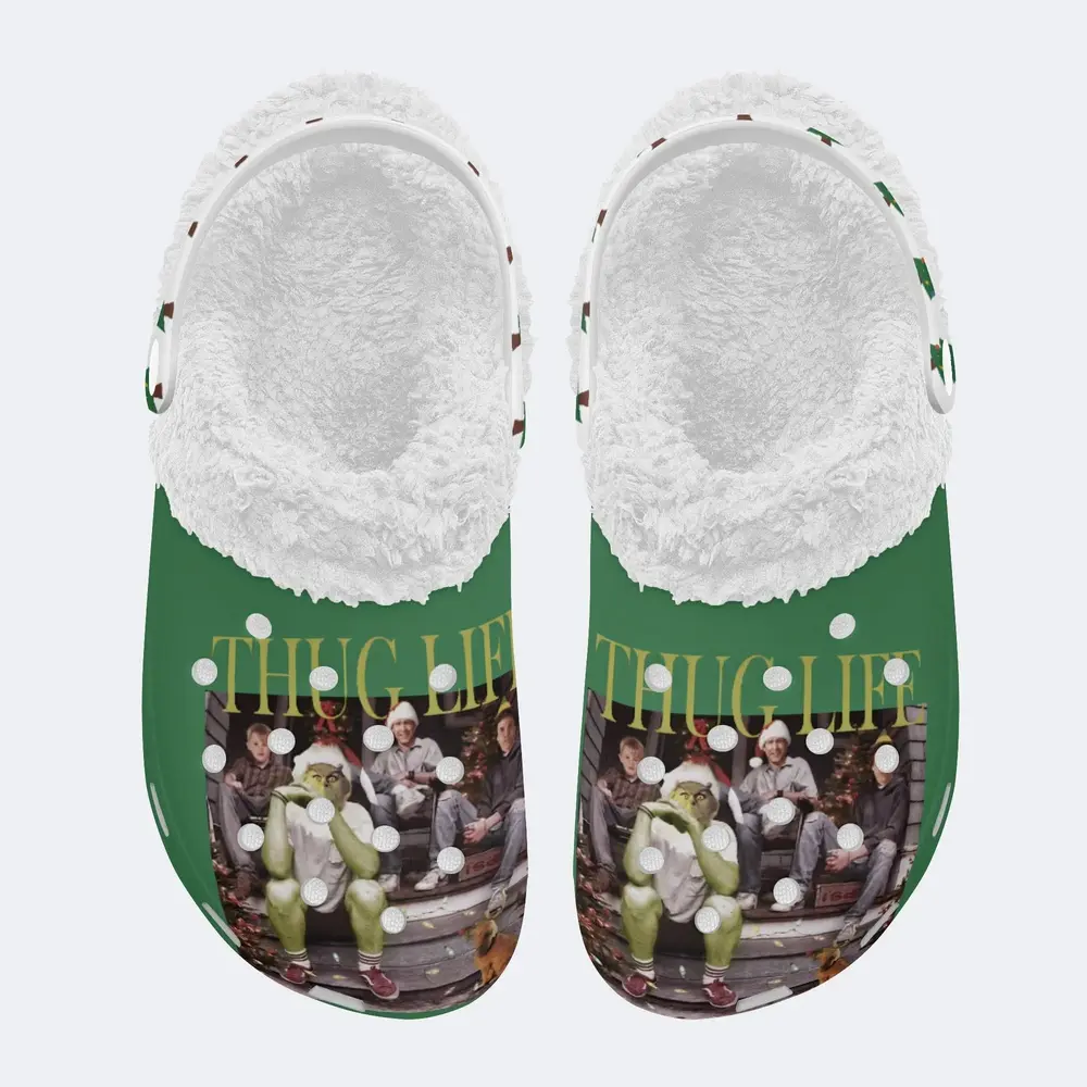 Merchidea Green Thug Life Christmas Crocs Crocband Fleece Lined Clogs Shoes Comfortable For Men Women and Kids In Winter