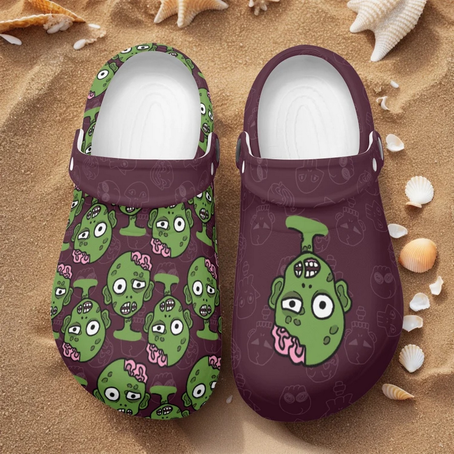 Merchidea Green Zombie Purple Halloween Crocs Crocband Clogs Shoes Comfortable For Men Women and Kids
