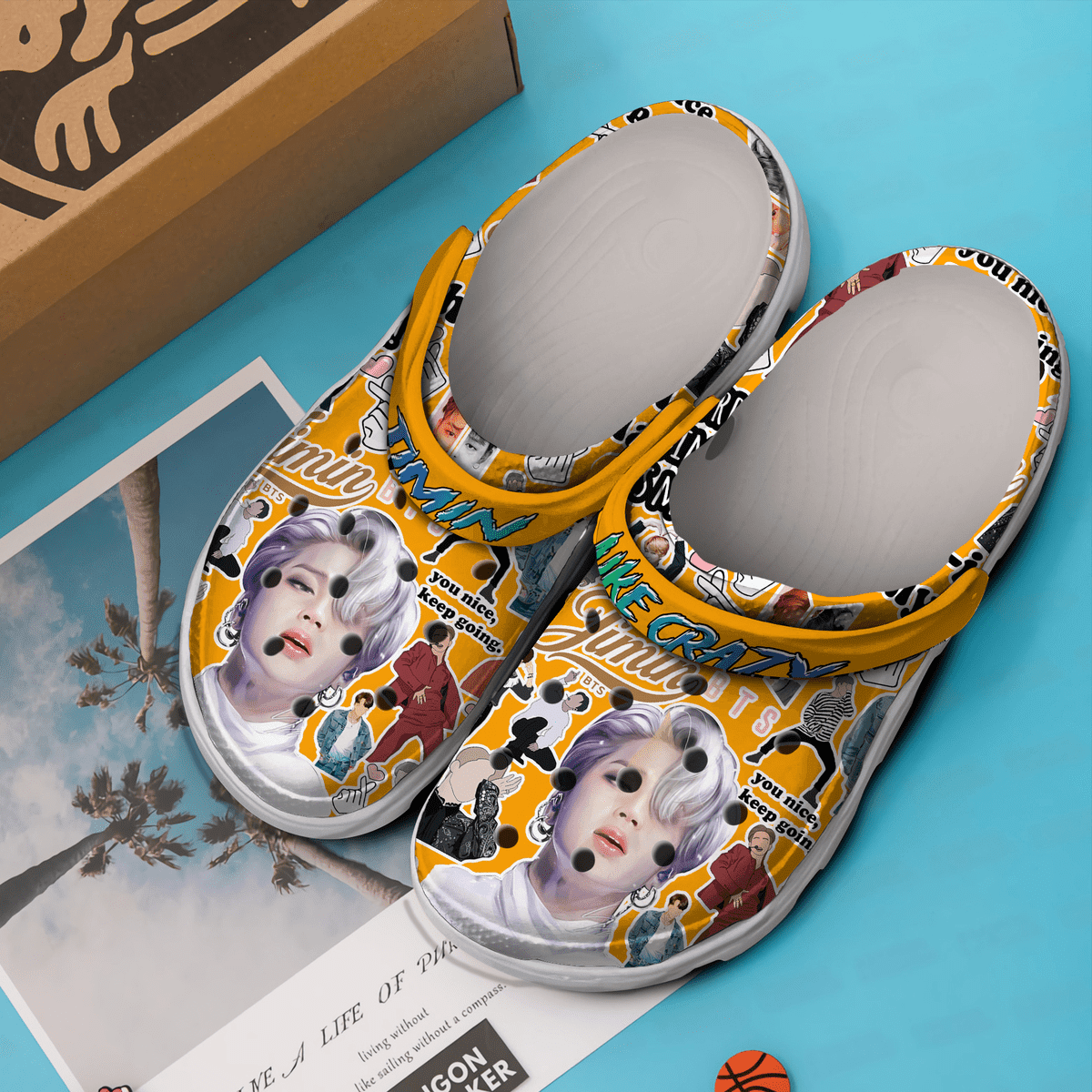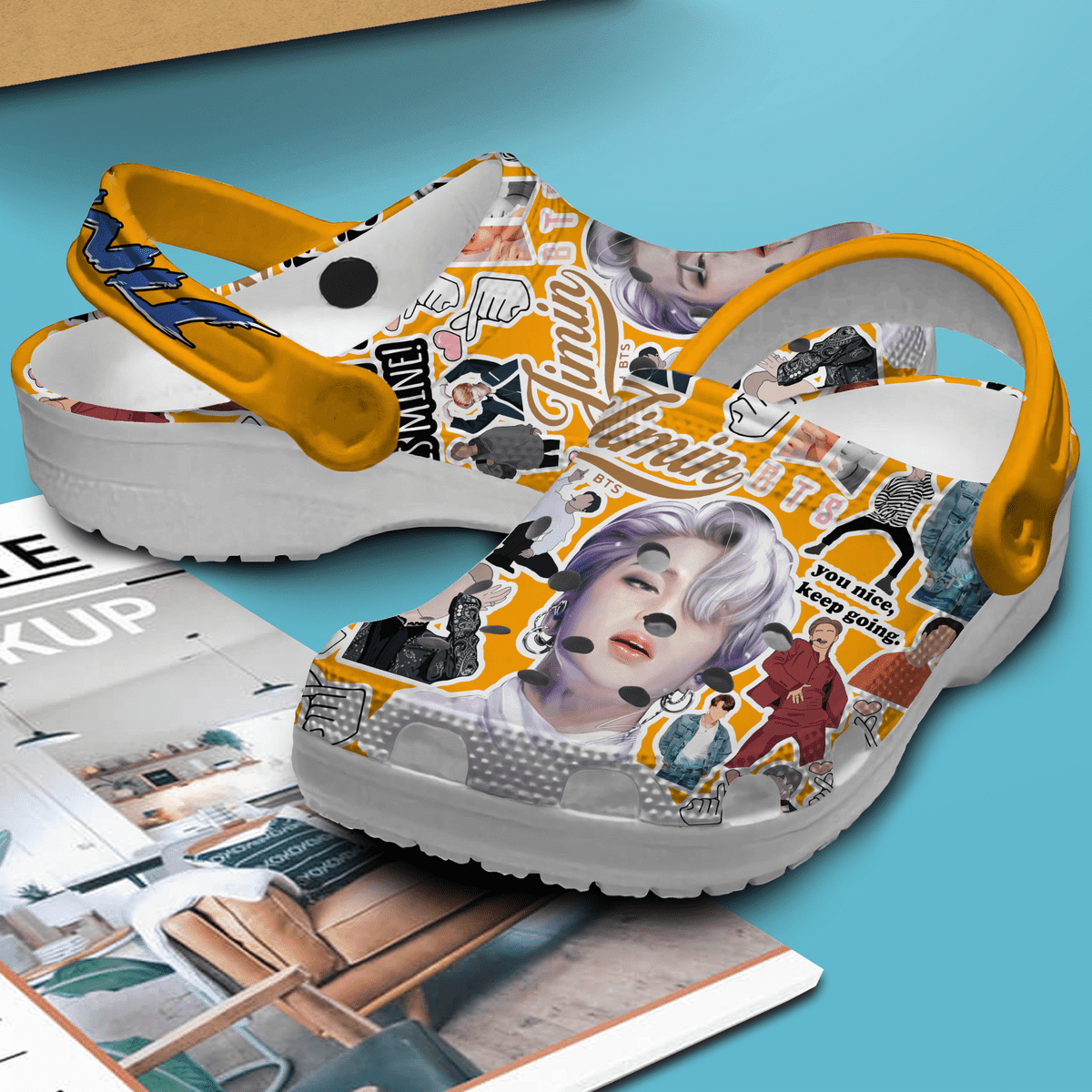 Merchidea Jimin BTS Band Music Crocs Crocband Clogs Shoes Comfortable For Men Women and Kids (Orange)