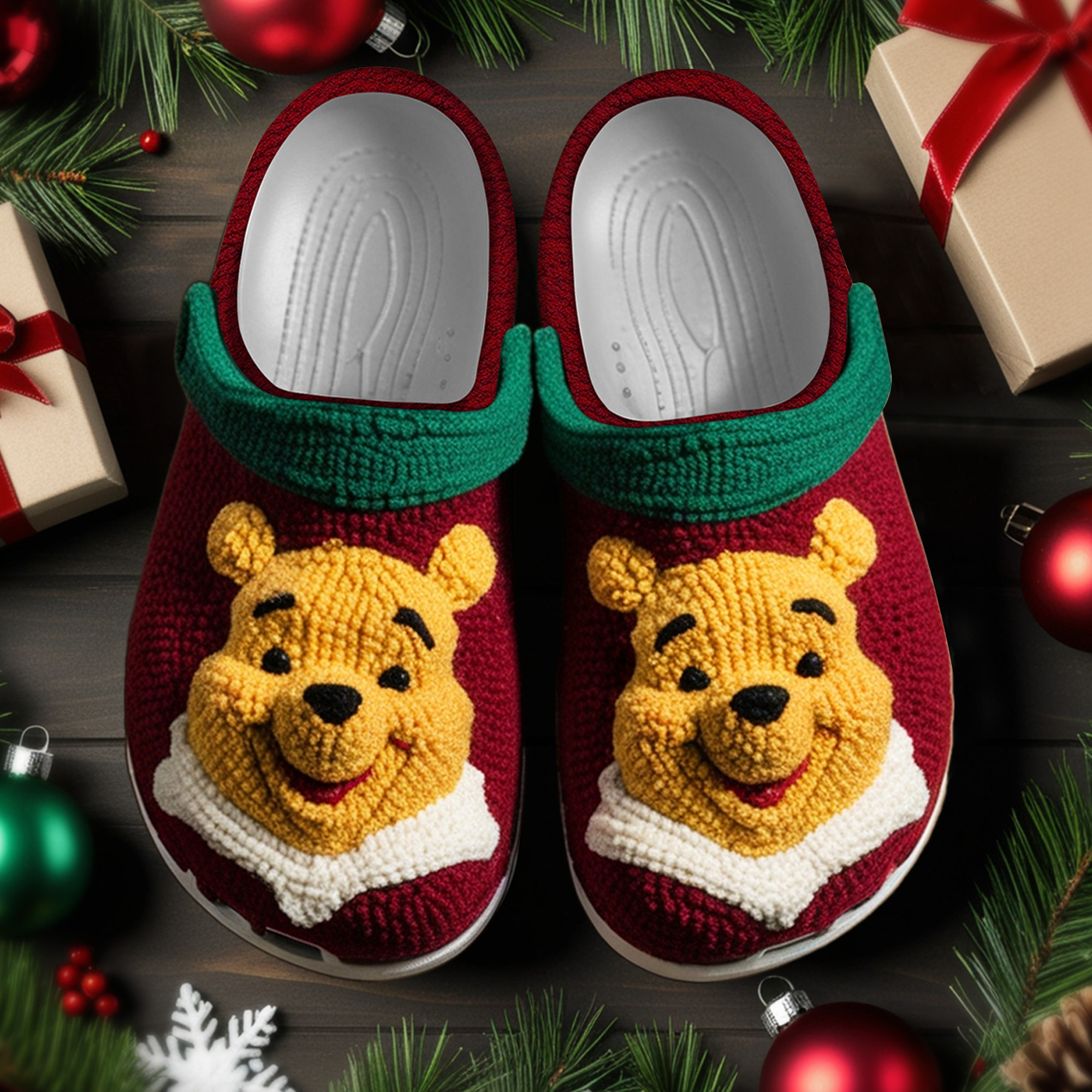 Merchidea Knit Effect Winnie The Pooh Cartoon Crocs Crocband Clogs Shoes Comfortable For Men Women and Kids