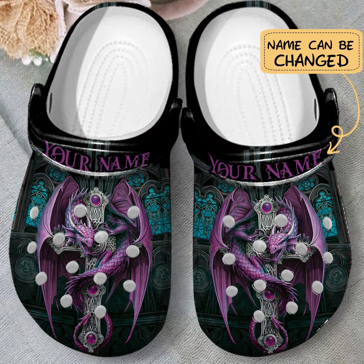 Merchidea Love Purple Dragon Crocs Crocband Clogs Shoes Comfortable For Men Women and Kids