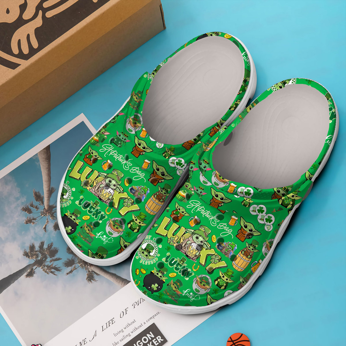 Merchidea Lucky Baby Yoda Saint Patrick’s Day Crocs Crocband Clogs Shoes Comfortable For Men Women and Kids