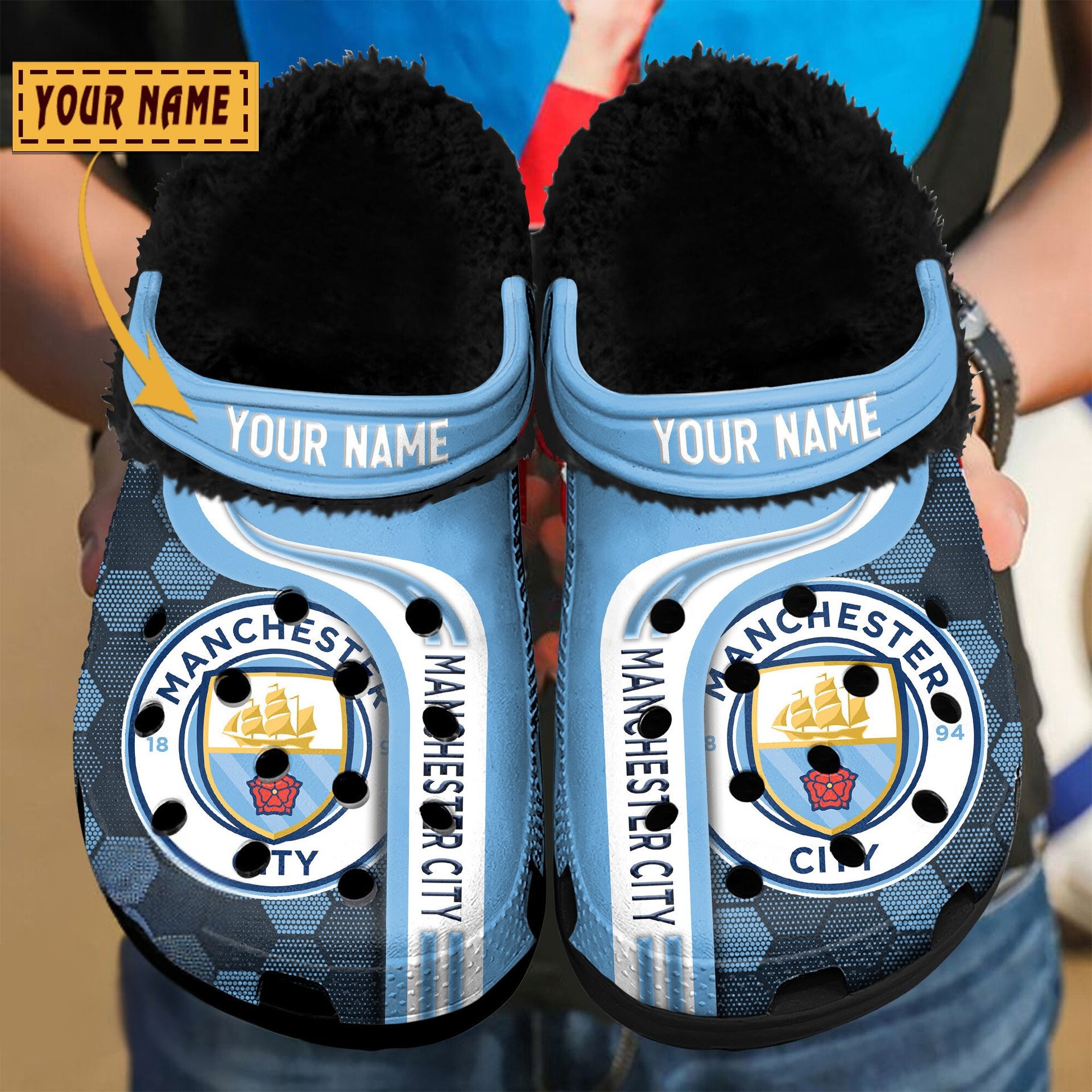 Merchidea Manchester City EPL Crocs Crocband Fleece Lined Clogs Shoes Comfortable For Men Women and Kids In Winter