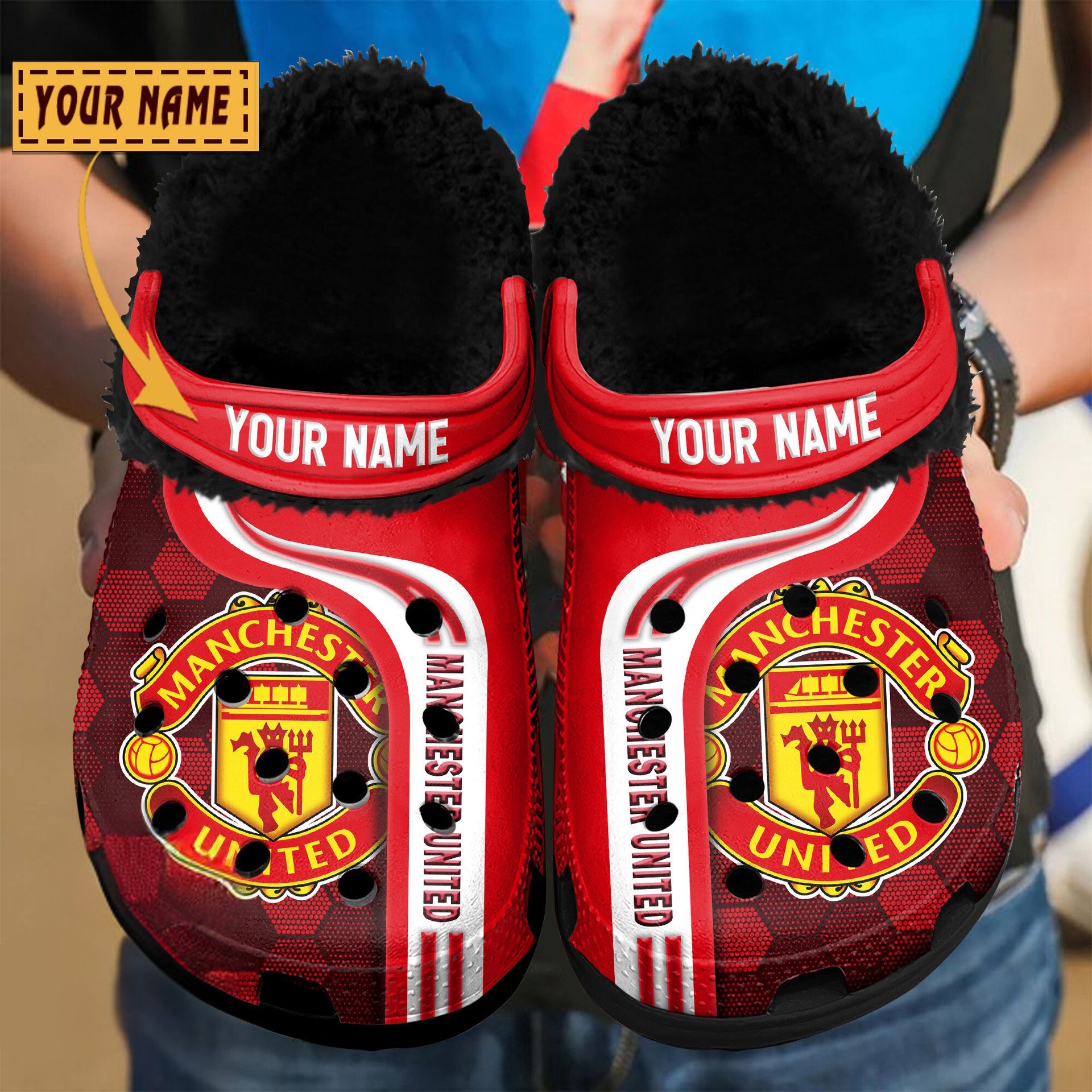 Merchidea Manchester United EPL Crocs Crocband Fleece Lined Clogs Shoes Comfortable For Men Women and Kids In Winter