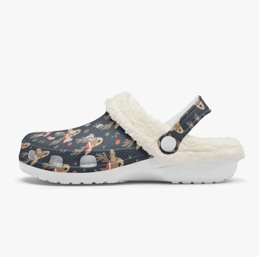 Merchidea Merry Christmas Reindeer Crocs Crocband Fleece Lined Clogs Shoes Comfortable For Men Women and Kids In Winter