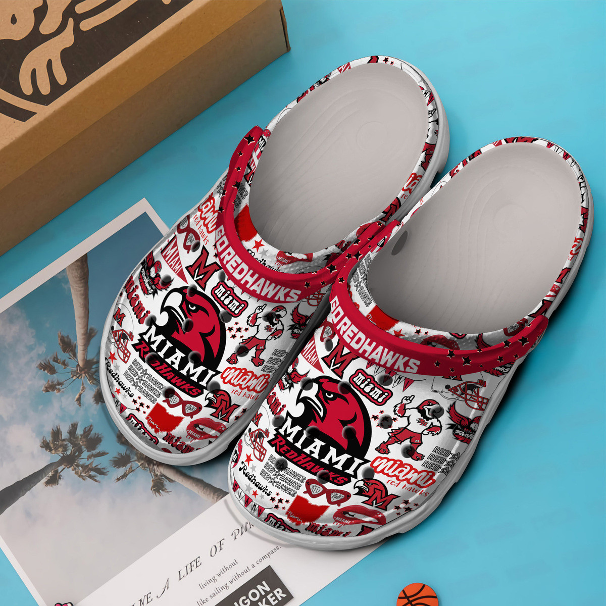 Merchidea Miami Red Hawks NCAA Sport Crocs Crocband Clogs Shoes Comfortable For Men Women and Kids