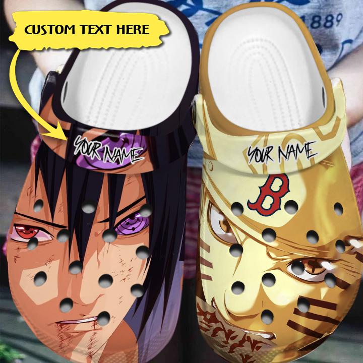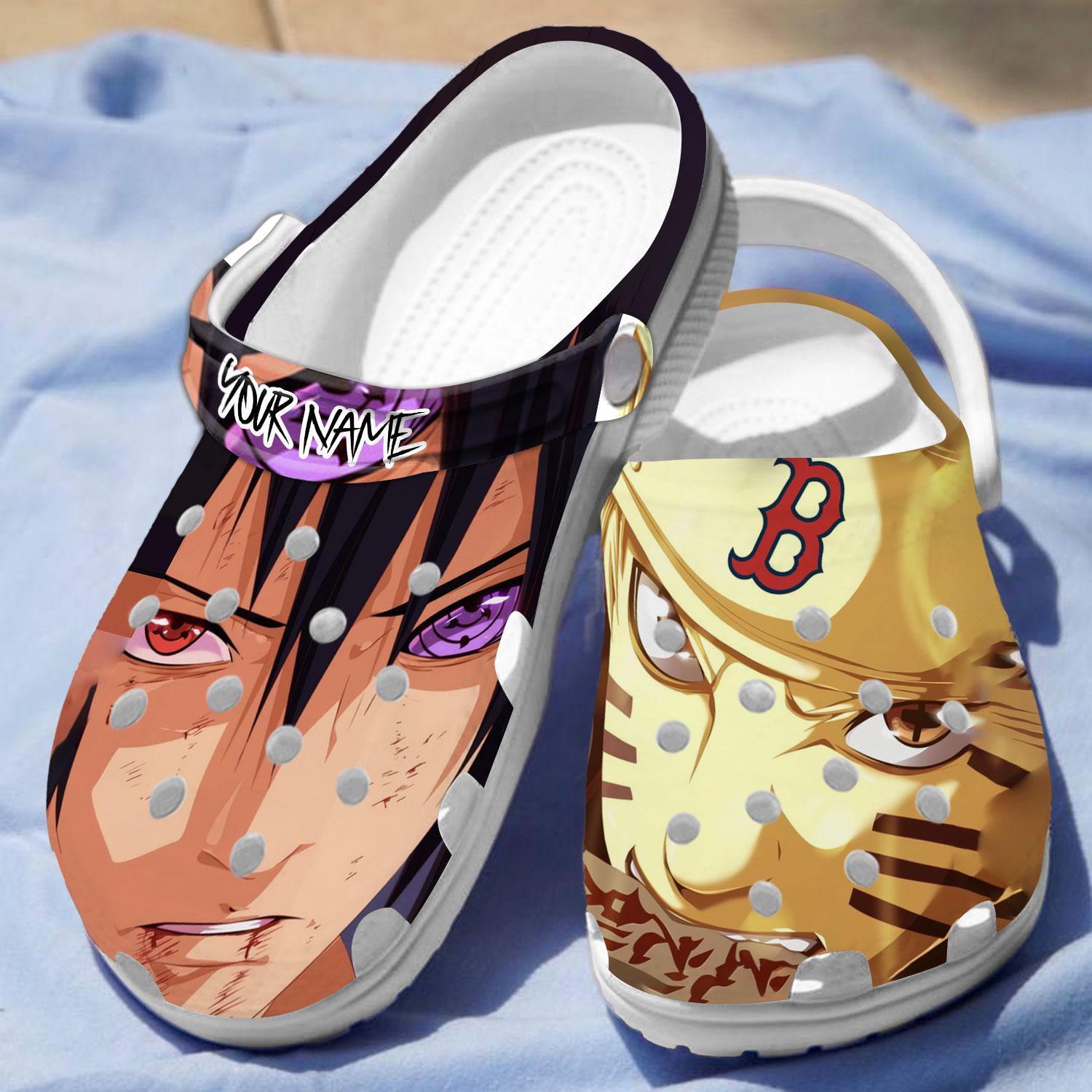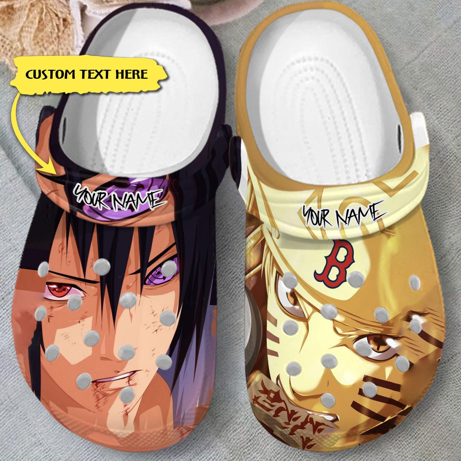 Merchidea Naruto And Boston Red Sox MLB Sport Crocs Crocband Clogs Shoes Comfortable For Men Women and Kids