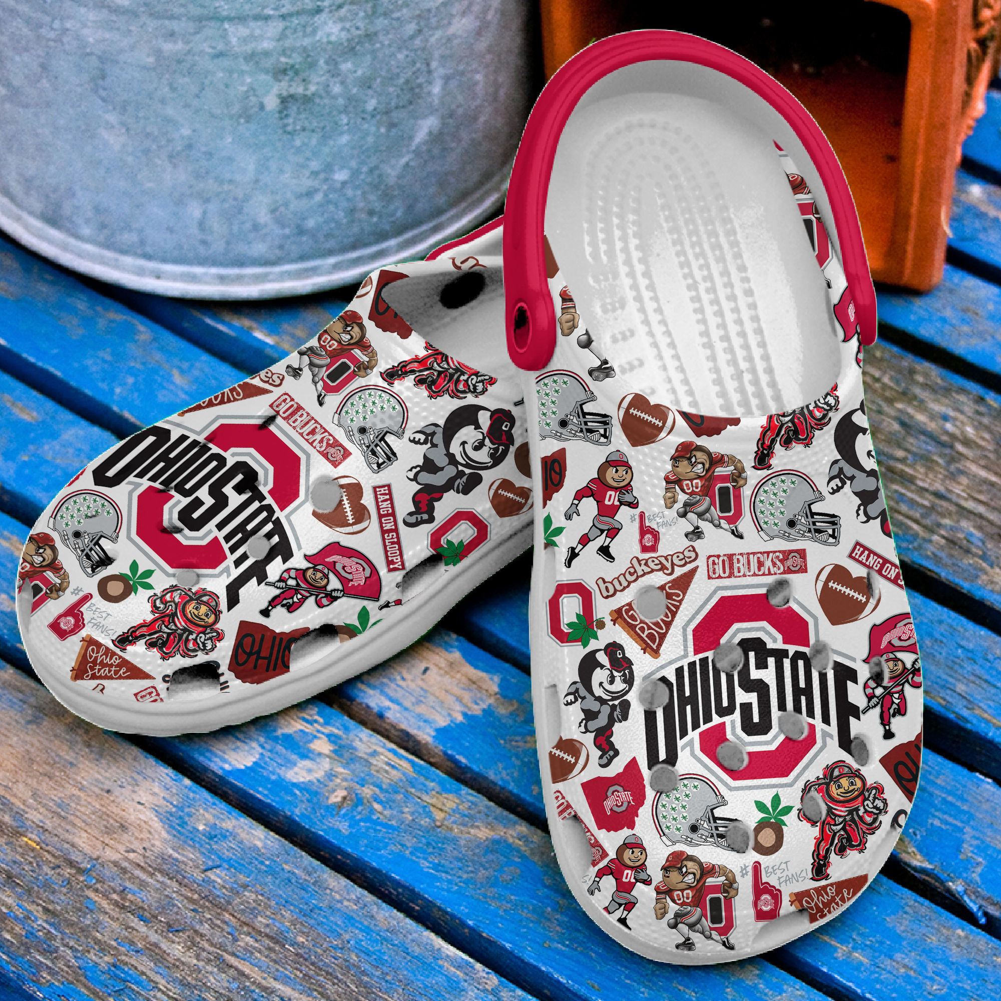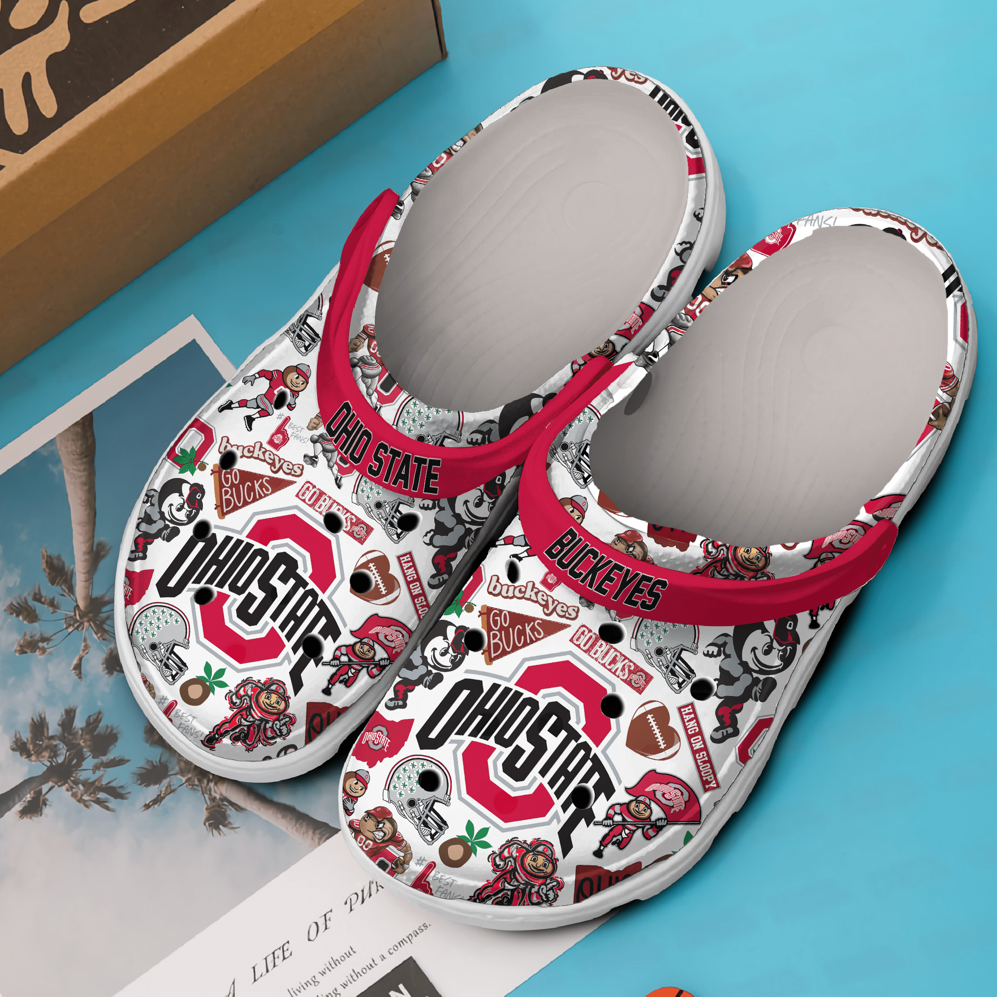 Merchidea Ohio State Buckeyes NCAA Sport Crocs Crocband Clogs Shoes Comfortable For Men Women and Kids