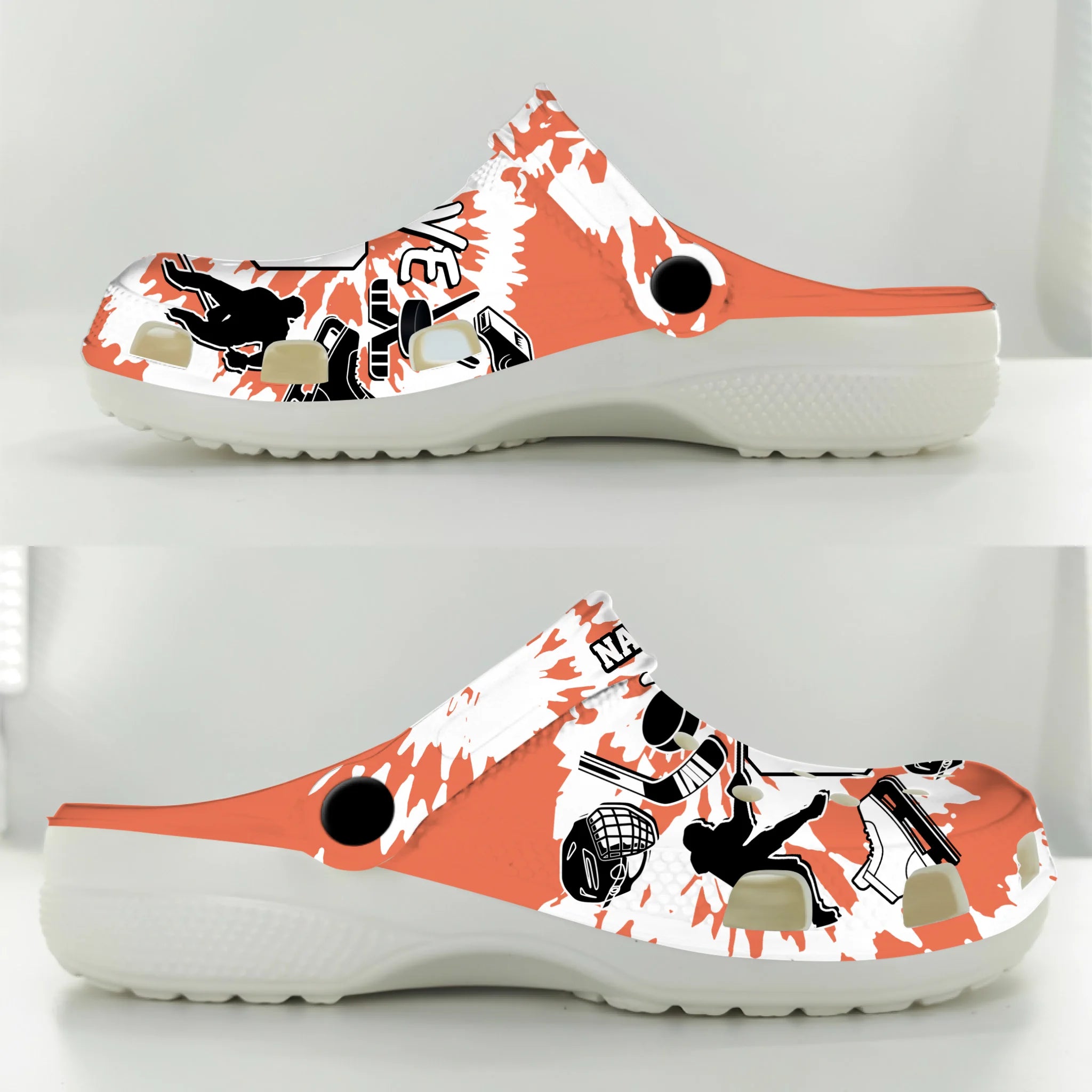 Merchidea Orange Tie-Dye Ice Hockey Sport Crocs Crocband Clogs Shoes Comfortable For Men Women and Kids