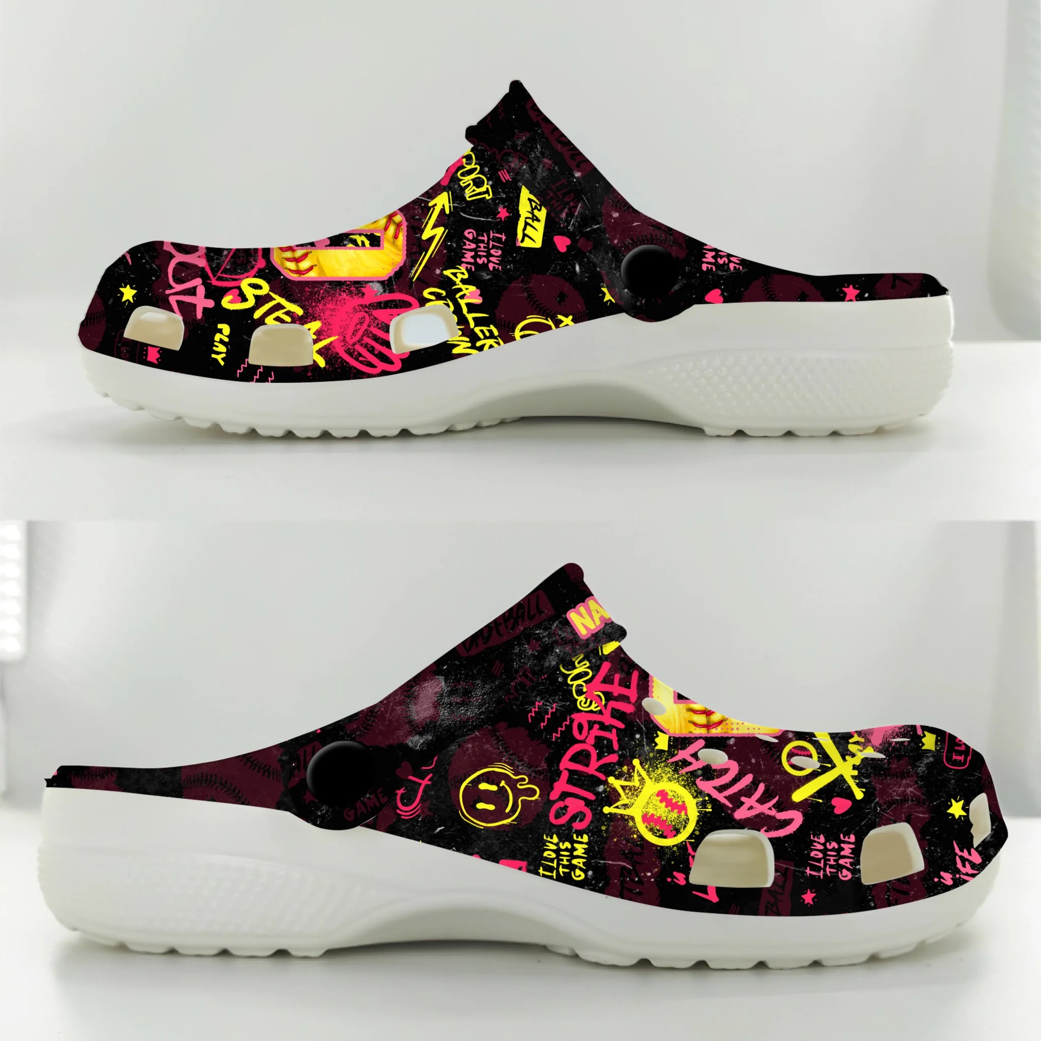 Merchidea Pink Tag Out Softball Sport Crocs Crocband Clogs Shoes Comfortable For Men Women and Kids