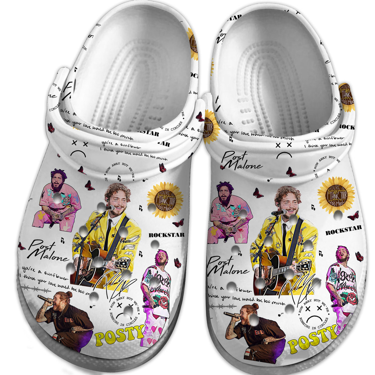 Merchidea Post Malone Music Crocs Crocband Clogs Shoes Comfortable For Men Women and Kids