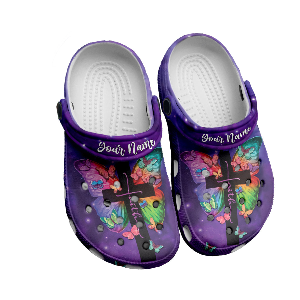 Merchidea Purple Butterfly Faith Jesus Customized Crocs Crocband Clogs Shoes Comfortable For Men Women and Kids Gift For Jesus Lovers