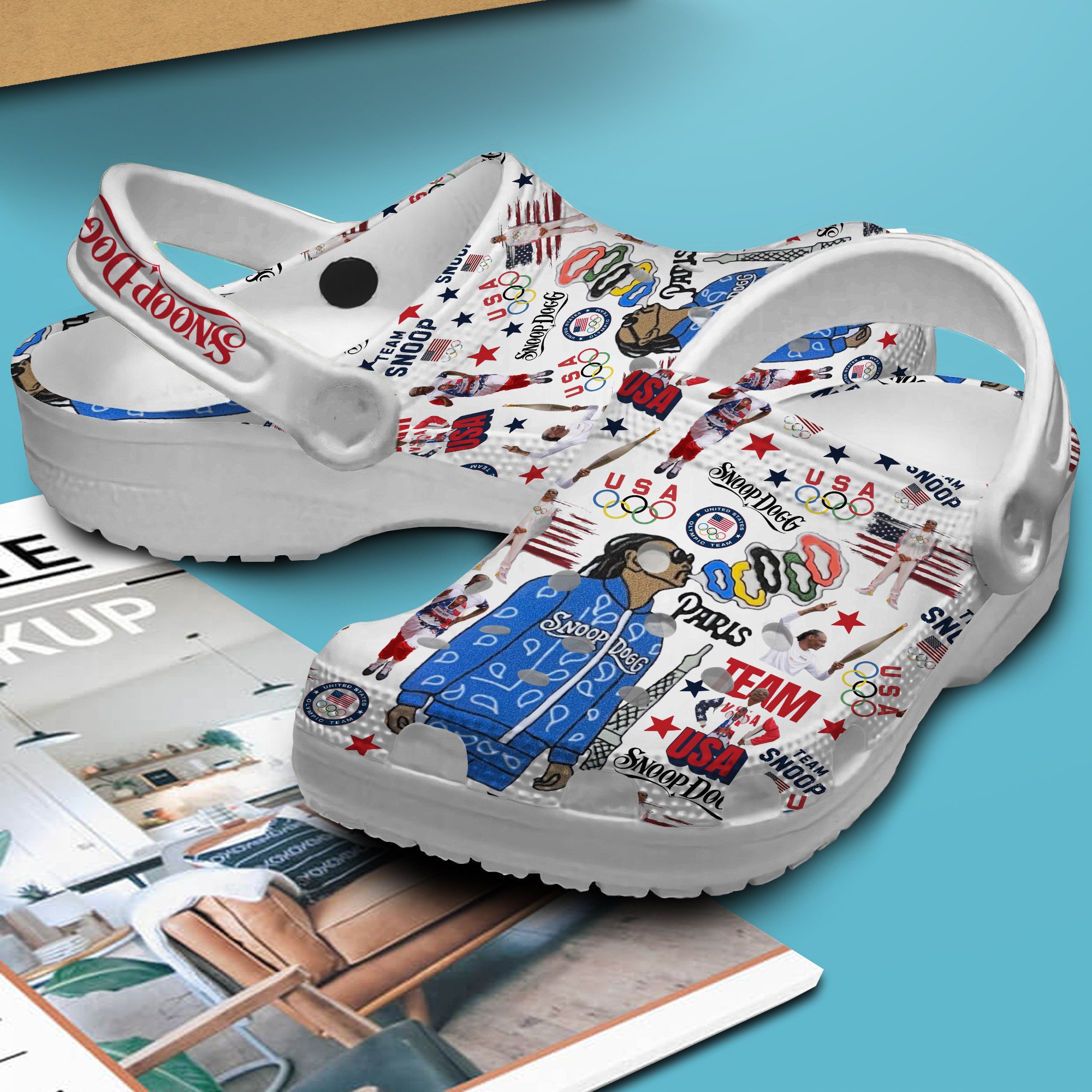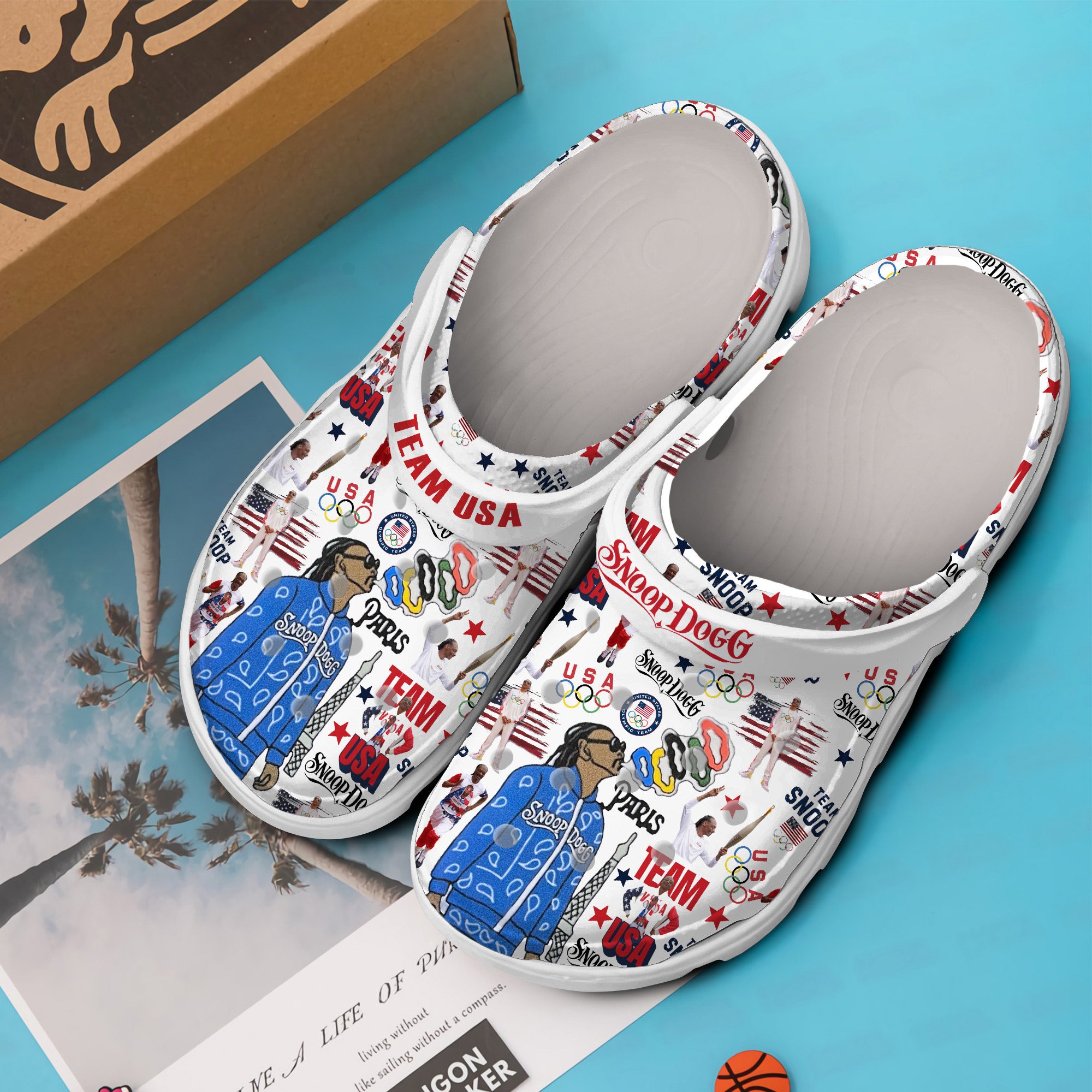 Merchidea Snoop Dogg Olympic Paris 2024 Team USA Sport Crocs Crocband Clogs Shoes Comfortable For Men Women and Kids