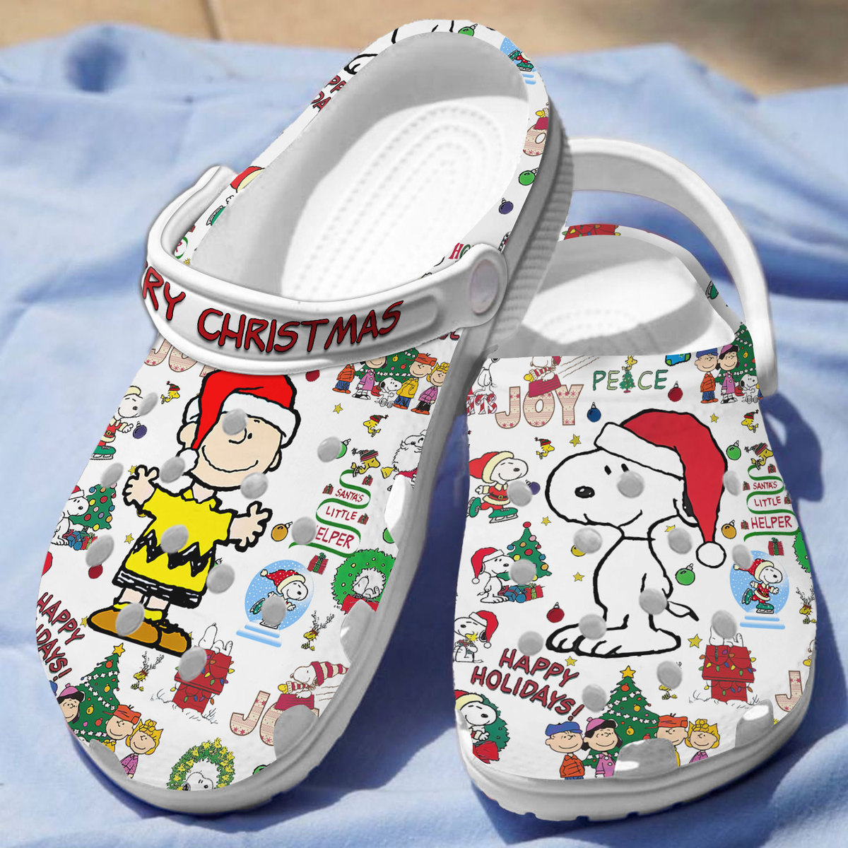 Merchidea Snoopy Cartoon Christmas Crocs Crocband Clogs Shoes Comfortable For Men Women and Kids