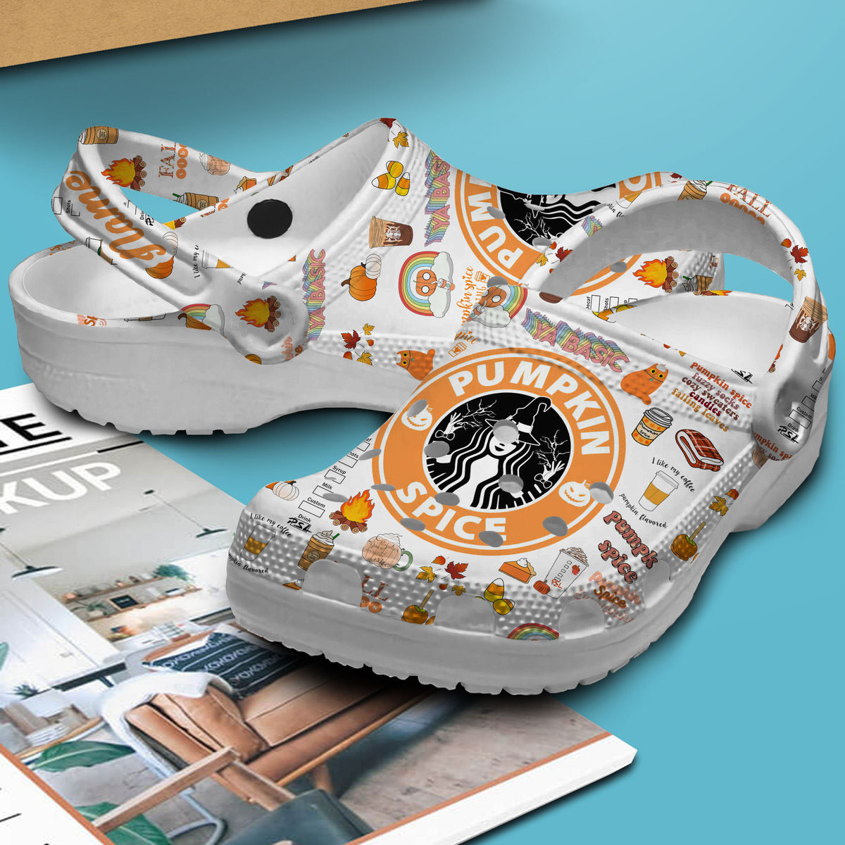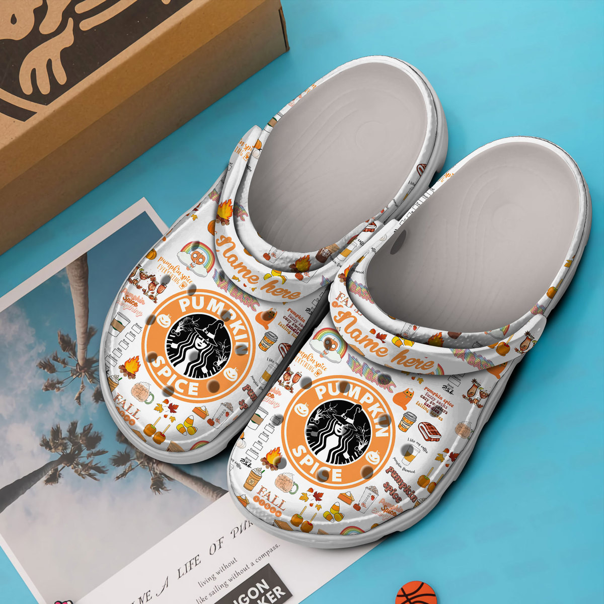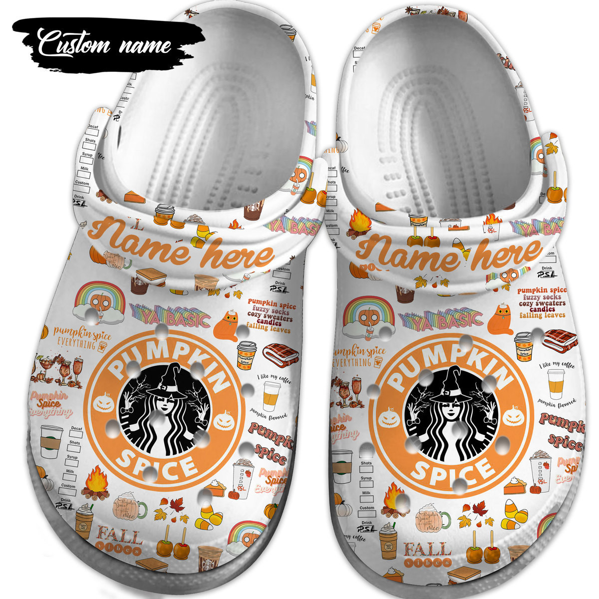 Merchidea Starbucks Pumpkin Spice Crocs Crocband Clogs Shoes Comfortable For Men Women and Kids
