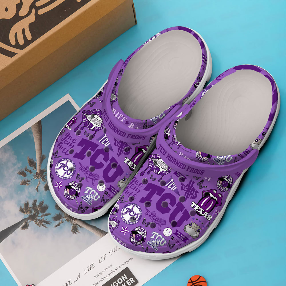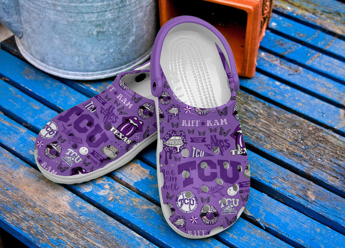 Merchidea TCU Horned Frogs NCAA Sport Premium Crocs Crocband Clogs Shoes Comfortable For Men Women and Kids