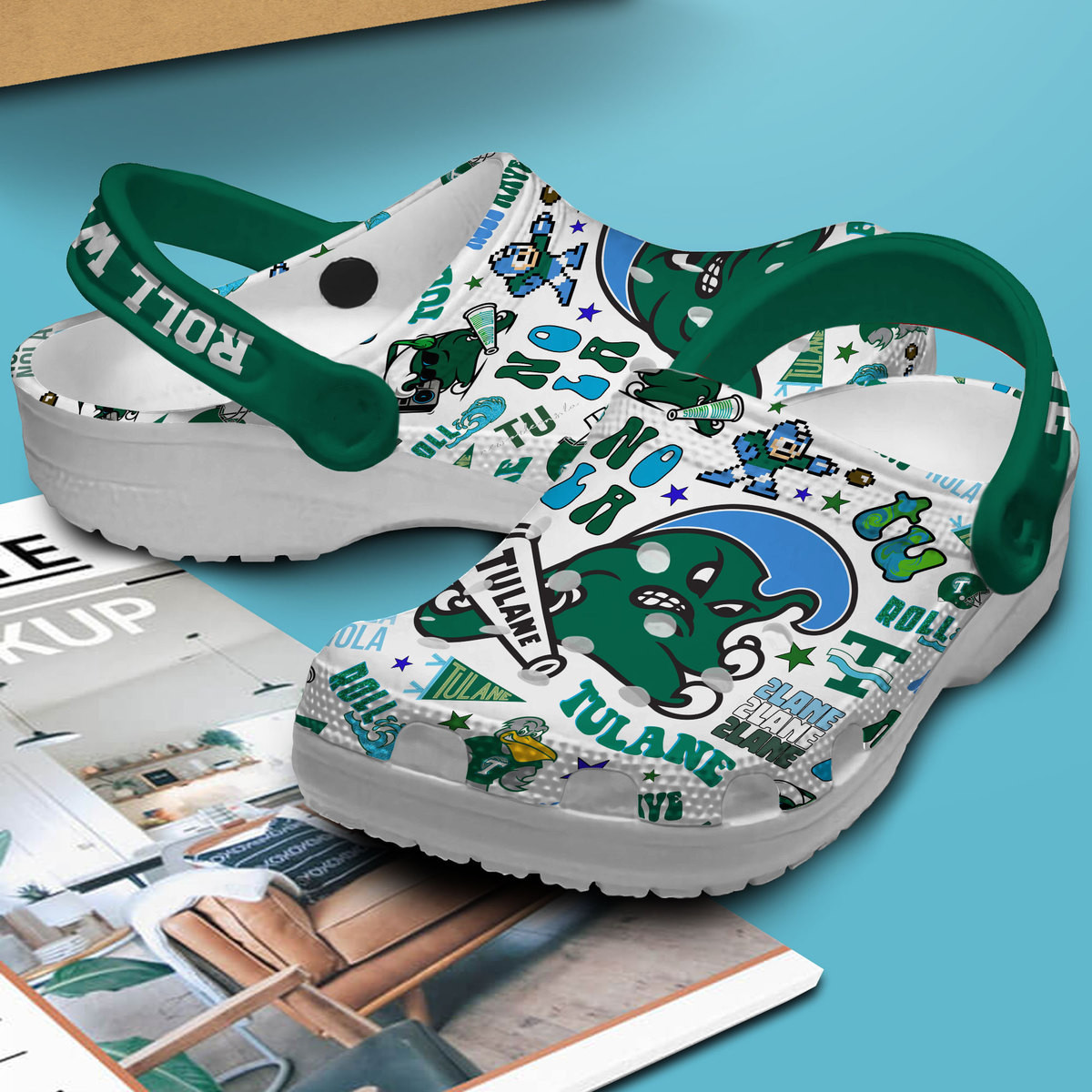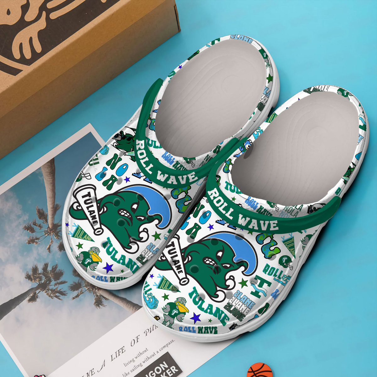 Merchidea Tulane Green Wave NCAA Sport Crocs Crocband Clogs Shoes Comfortable For Men Women and Kids