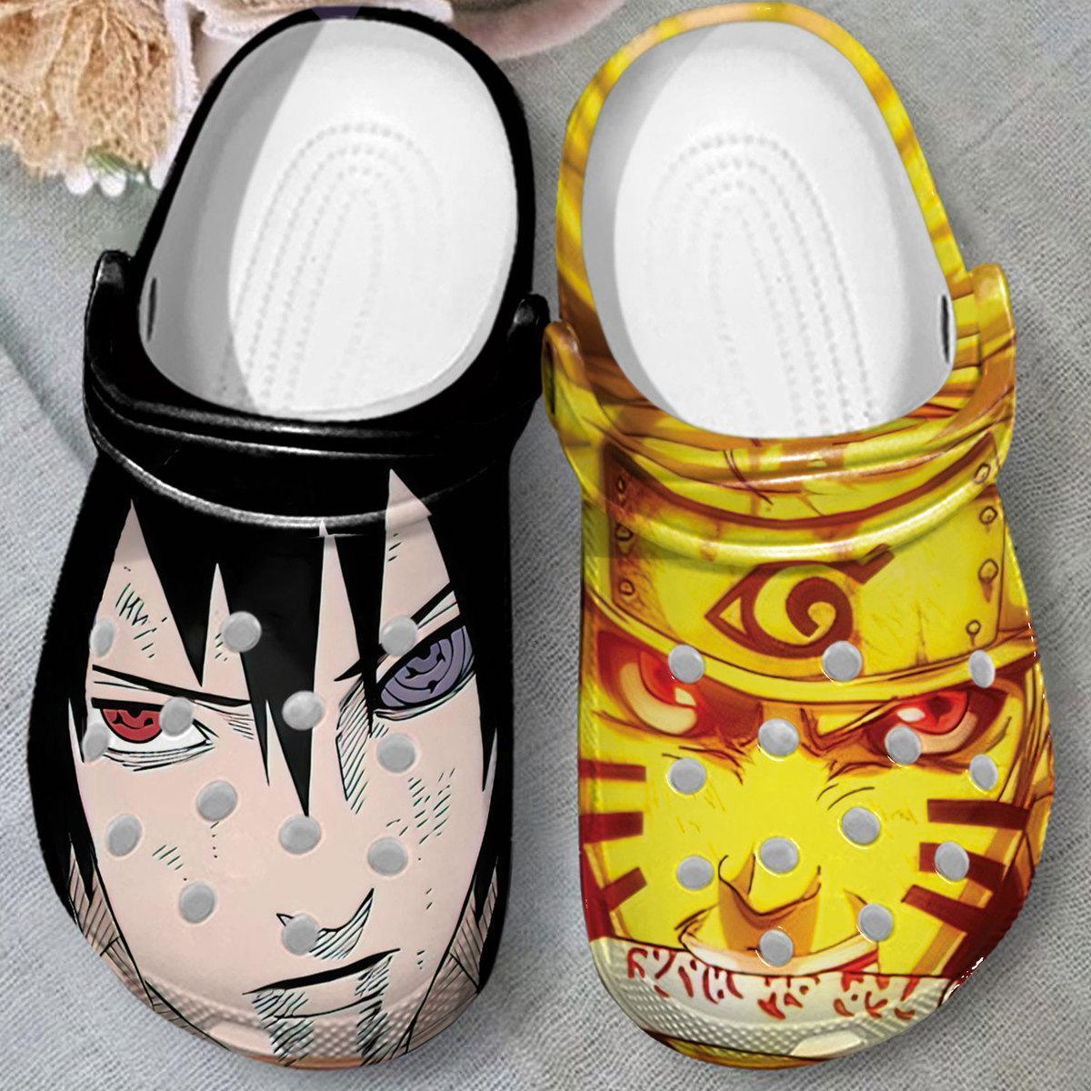 Merchidea Uzumaki Naruto vs Uchiha Sasuke Naruto Anime Crocs Crocband Clogs Shoes Comfortable For Men Women and Kids