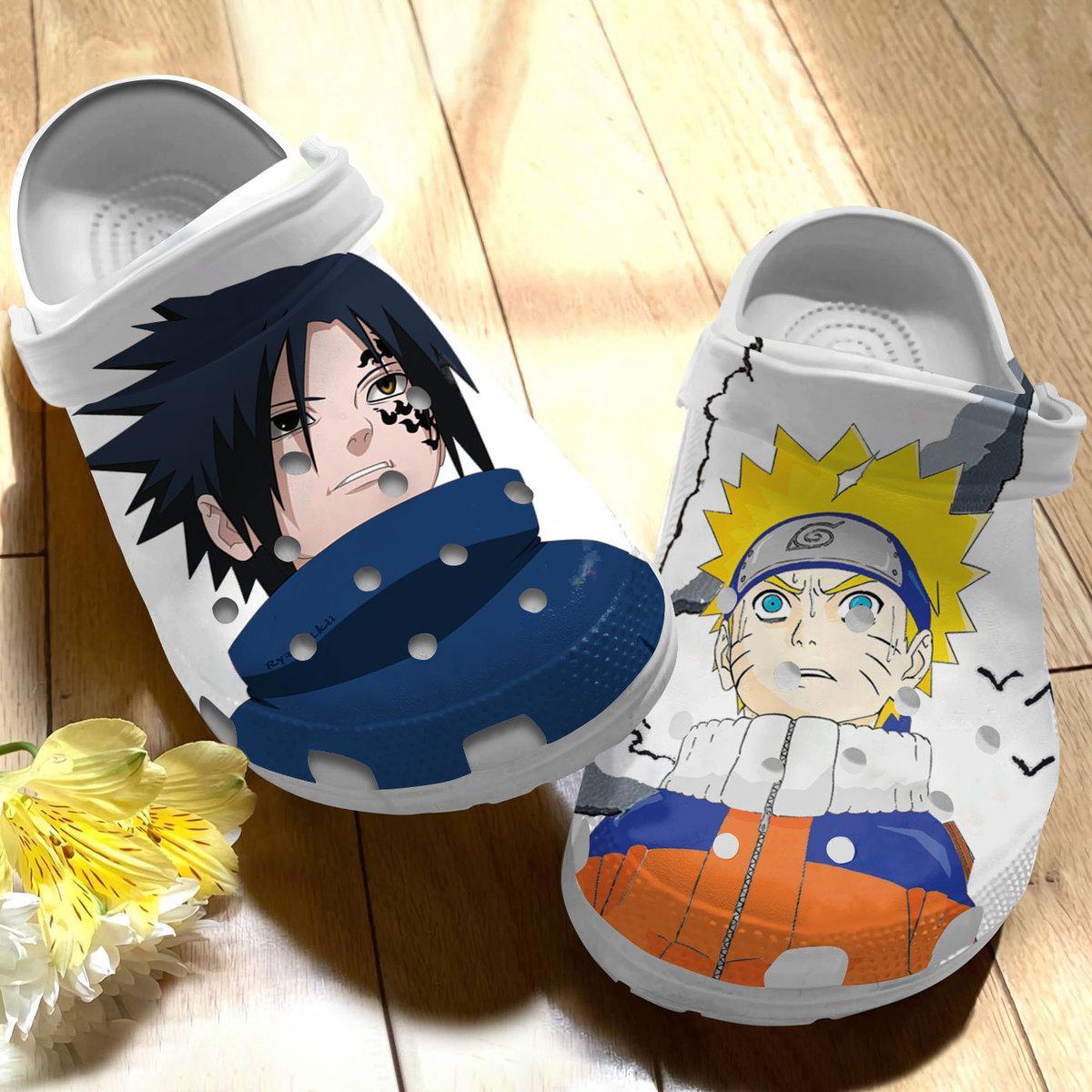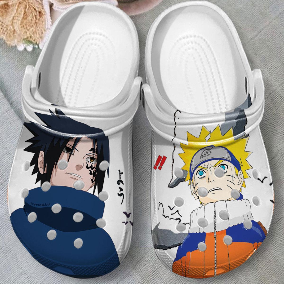 Merchidea Uzumaki Naruto vs Uchiha Sasuke Naruto Anime Crocs Crocband Clogs Shoes Comfortable For Men Women and Kids